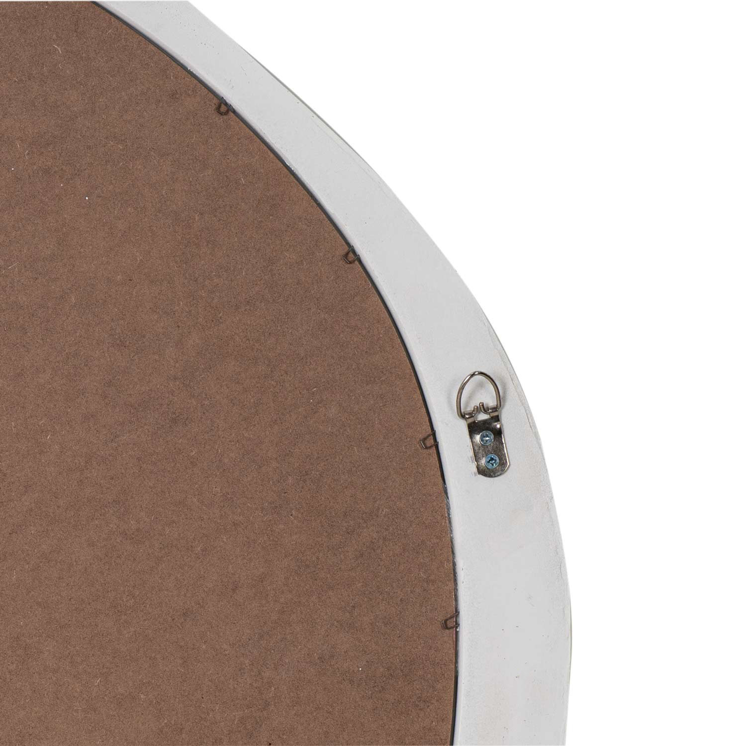 El marco, elaborado con poliuretano, presenta un acabado en blanco envejecido que aporta calidez y carácter a la pieza. Este detalle está enriquecido por un delicado relieve de formas orgánicas, que acentúa su estética vintage y natural, evocando la belleza de lo artesanal.