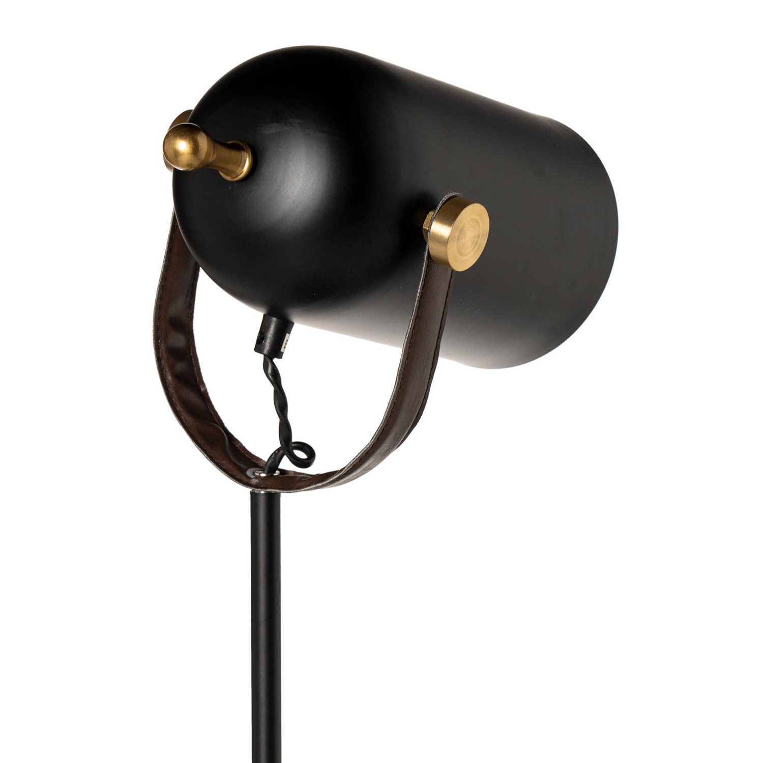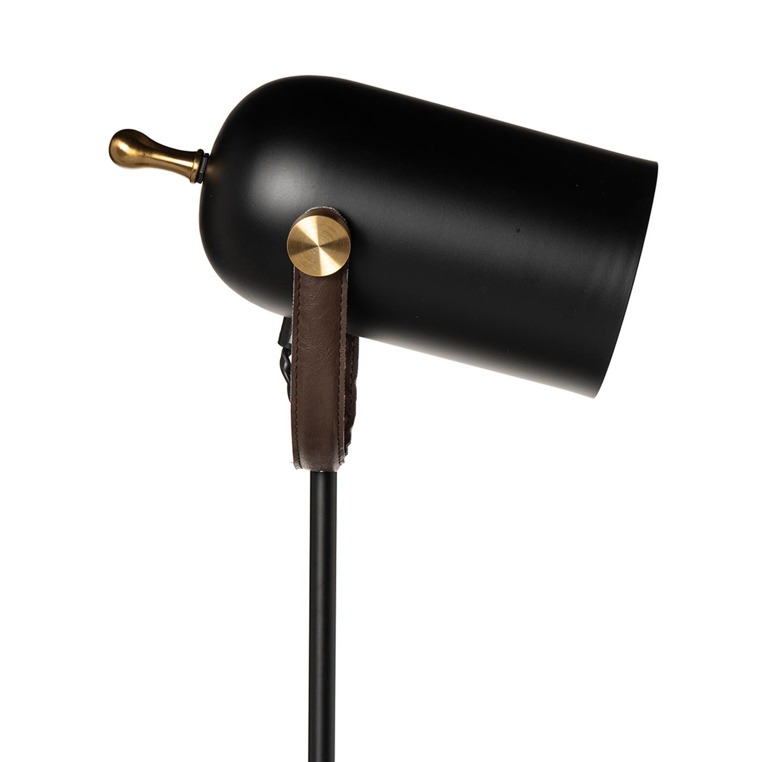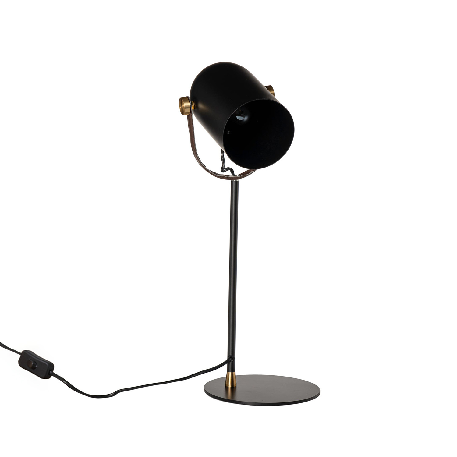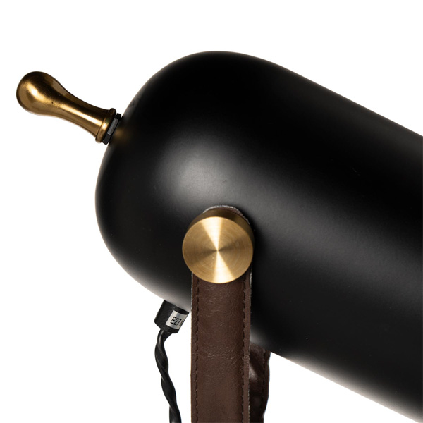 La lámpara de sobremesa LLUC combina elegancia y carácter en una pieza de diseño cuidado. Su estructura en metal negro se enriquece con una tira decorativa de polipiel marrón oscuro, que aporta textura y calidez, mientras que los detalles metálicos en dorado añaden un toque sofisticado y atemporal.