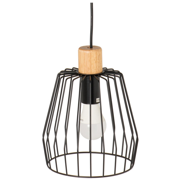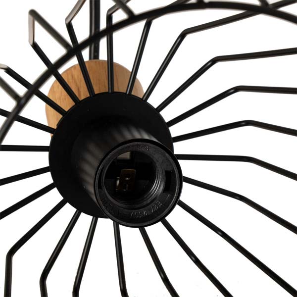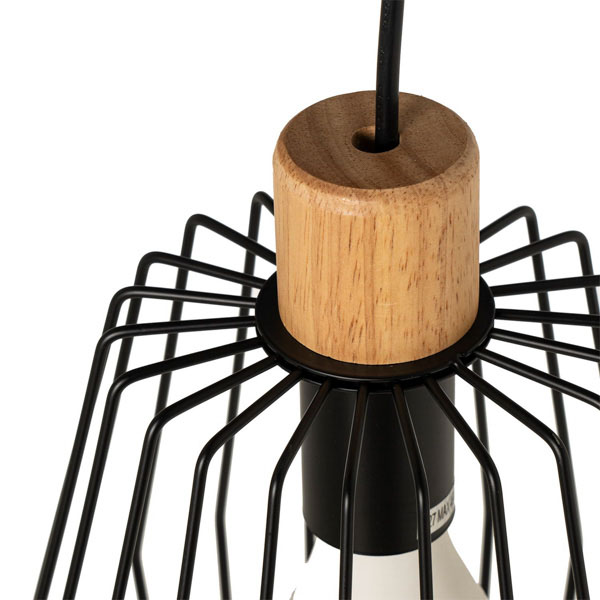 La lámpara de techo FAURA está formada por una pantalla de metal en color negro con una pletina de madera que le añade textura.