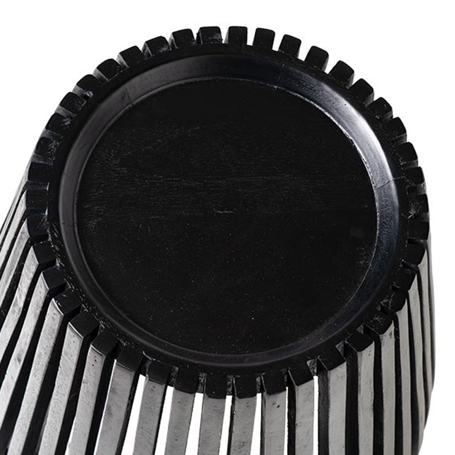 El acabado negro intensifica el impacto visual, aportando un aire sofisticado y moderno. En contraste, la superficie superior cerrada crea un área funcional que mantiene la estética minimalista sin perder su esencia práctica.