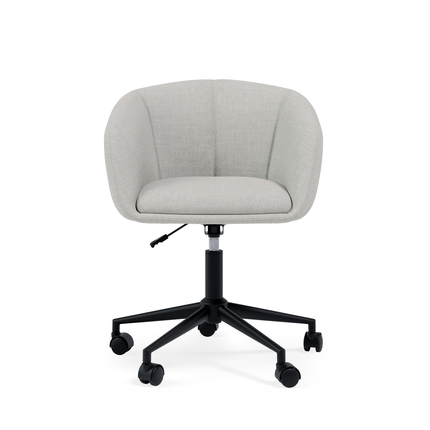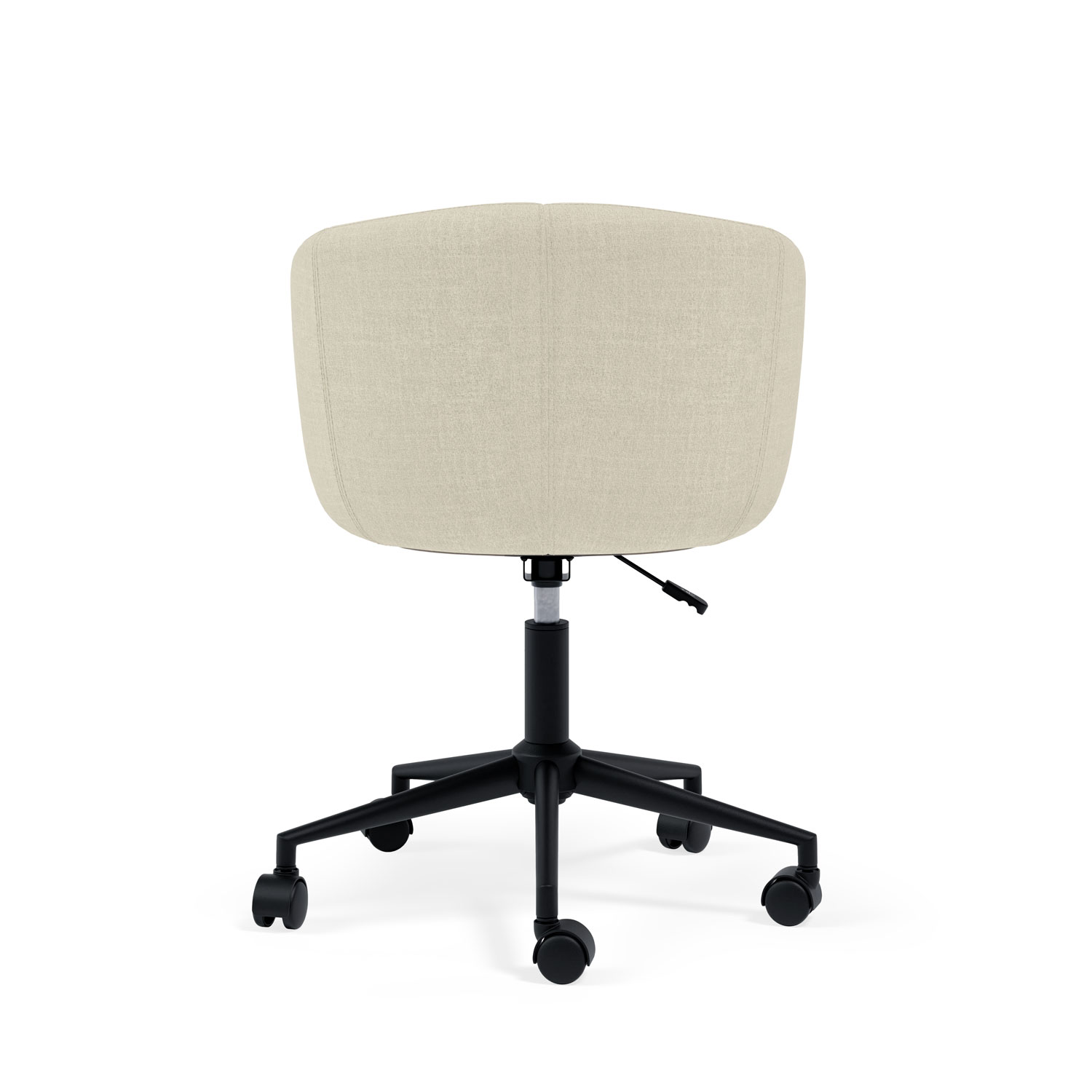 El diseño de la silla incluye un asiento, respaldo y reposabrazos acolchados, que ofrecen un nivel superior de confort, ideal para jornadas laborales extensas. La estructura metálica en color negro aporta un toque moderno y elegante, creando un contraste visual atractivo con el color del tejido, disponible en diversas tonalidades, para adaptarse a diferentes estilos de decoración.