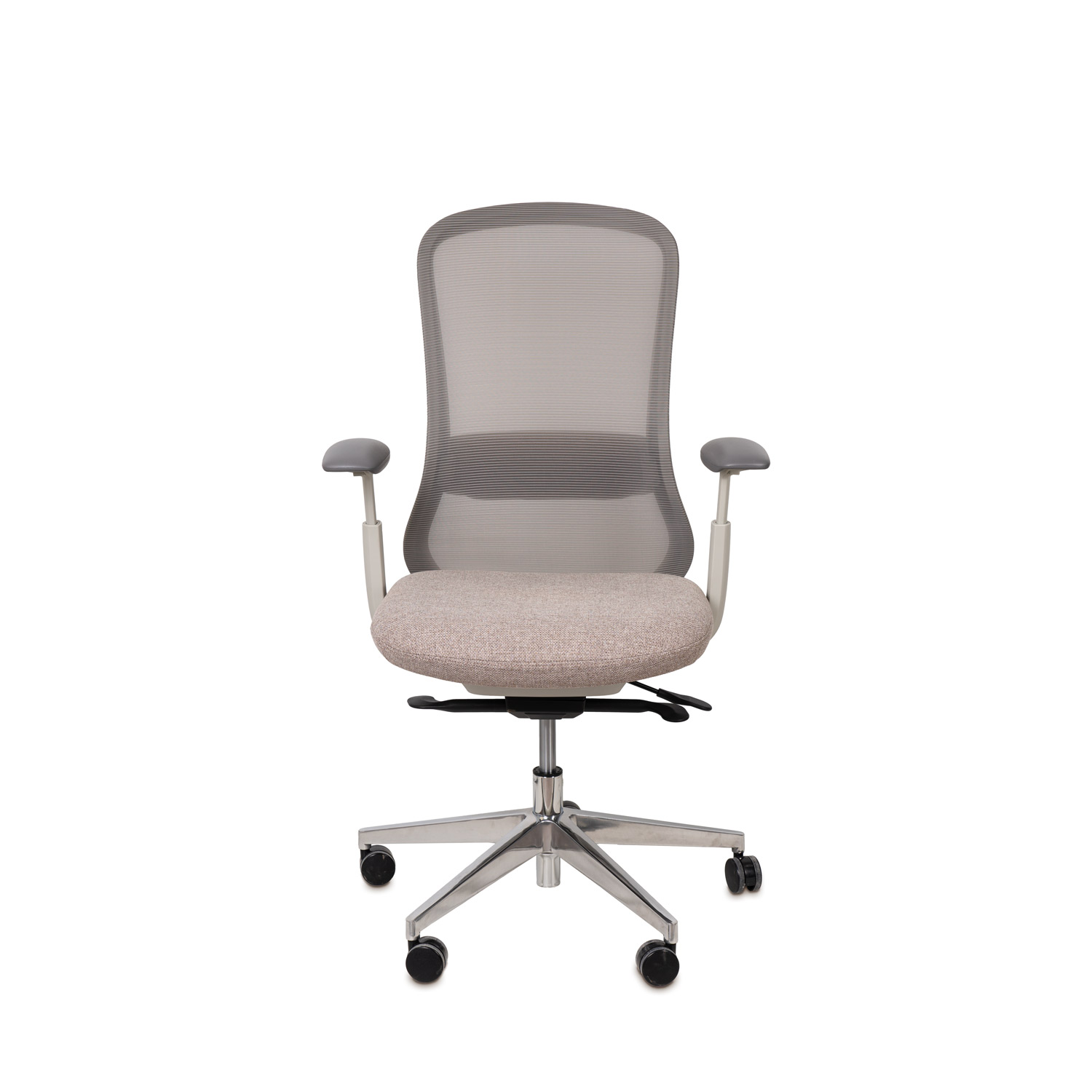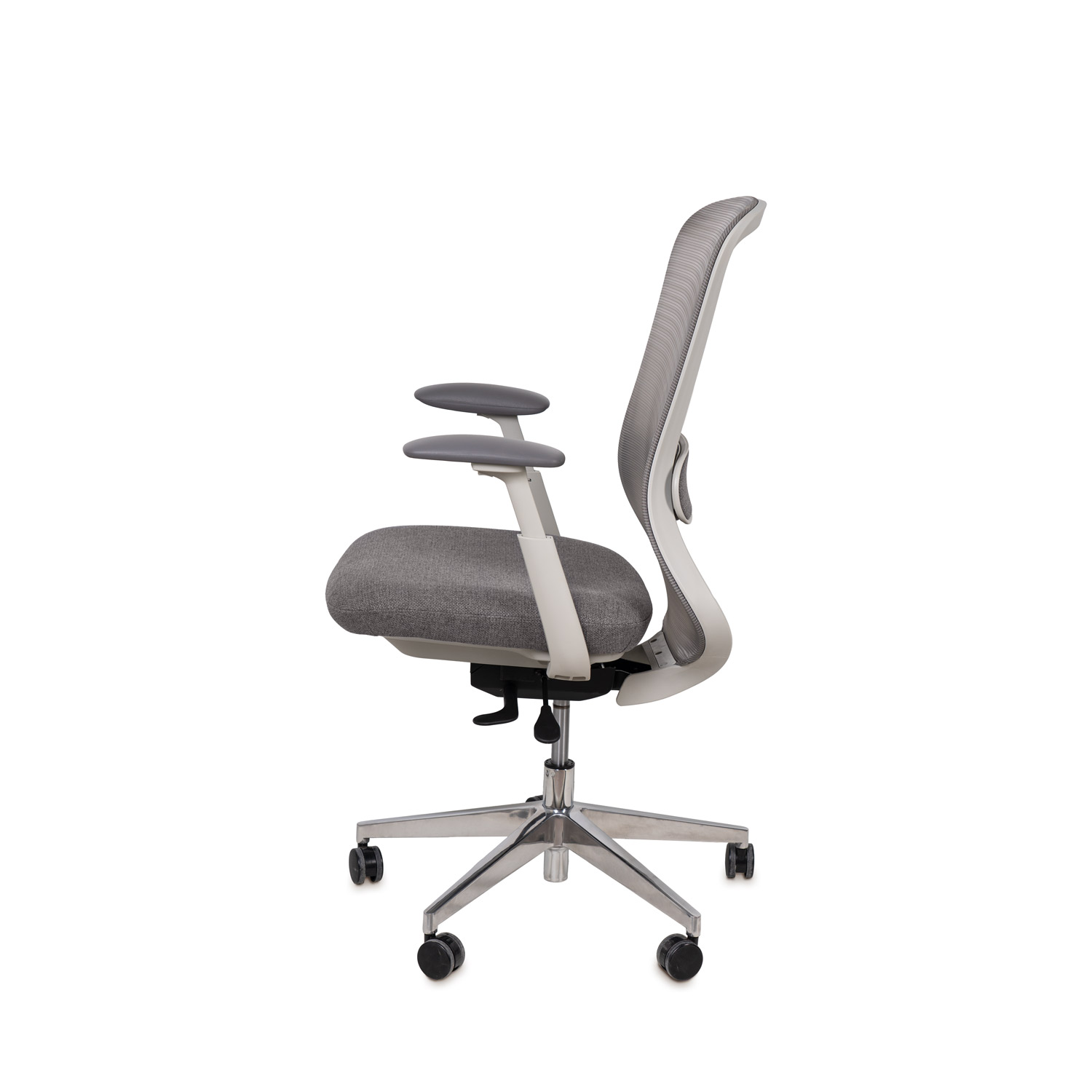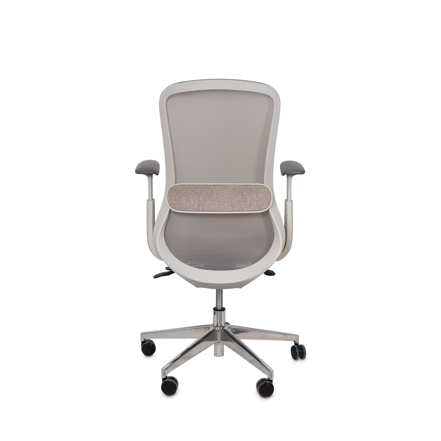 El respaldo, fabricado en tela de malla transpirable, favorece la circulación del aire para evitar la acumulación de calor, lo que garantiza un mayor confort y ayuda a reducir la fatiga incluso en jornadas prolongadas.