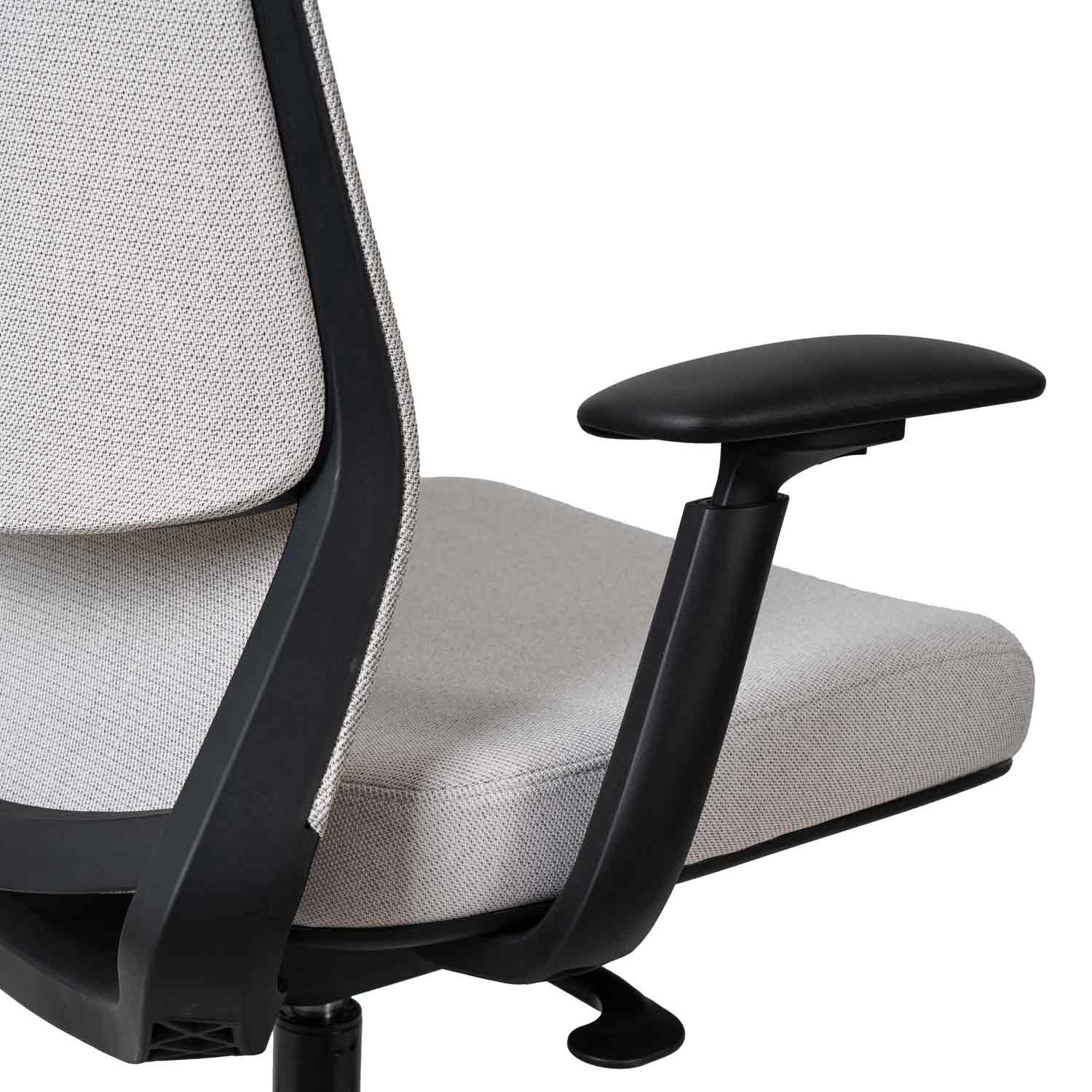 - Brazos 4D: Brazos regulables en sentido horizontal hacia afuera, en altura y desplazamiento del resposabrazos en 2 ejes.