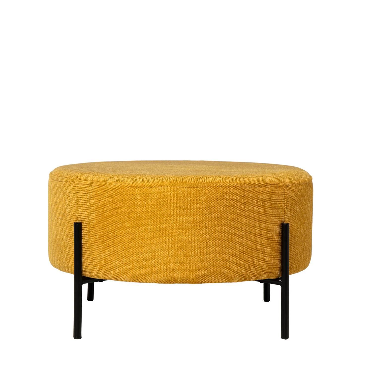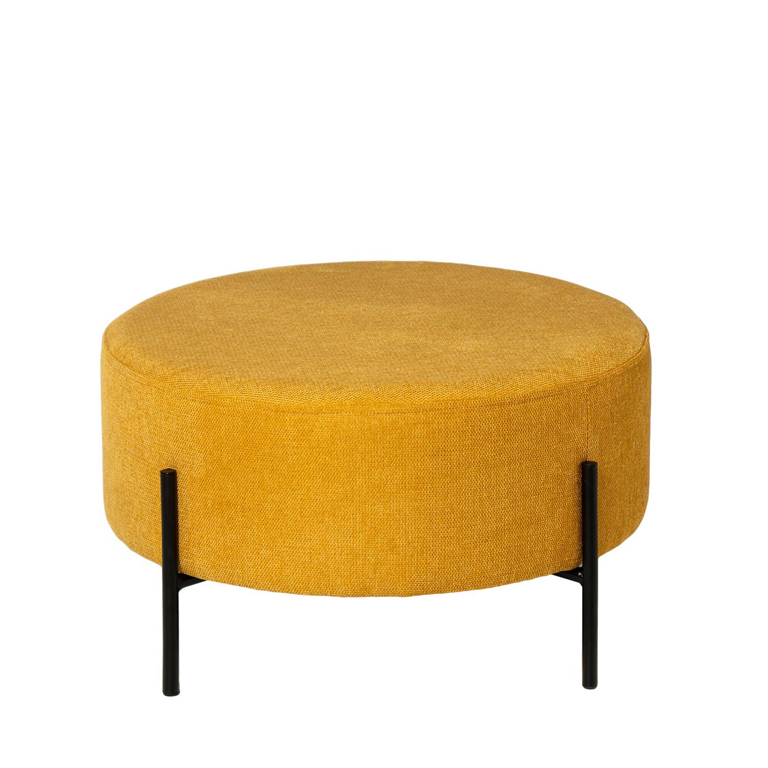 El diseño redondo y genoroso del puff CAMILO proporciona un asiento cómodo y amplio, ideal para relajarse o para utilizarlo como reposapiés en zonas de descanso.