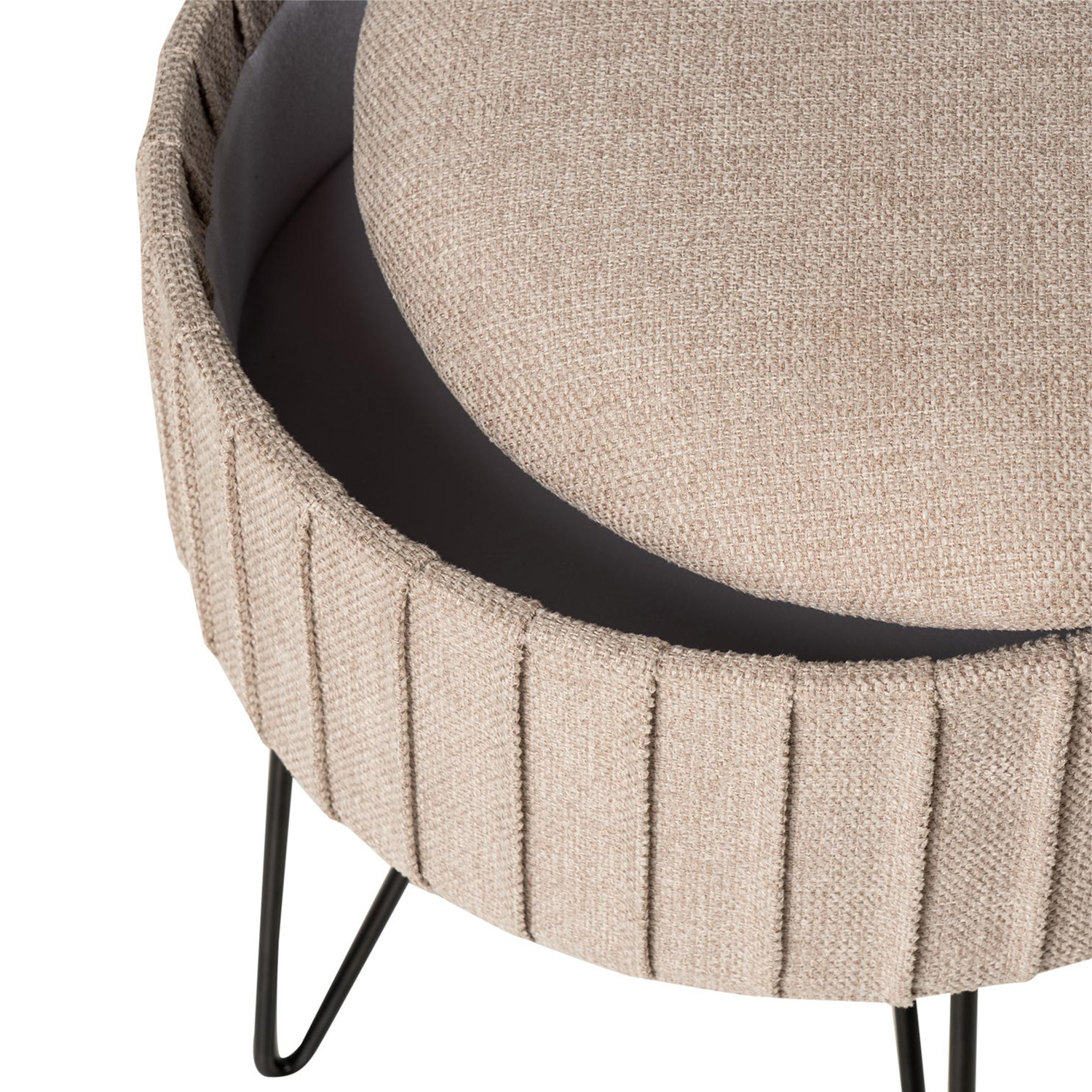 El puff ETHAN es el complemento decorativo perfecto. Bajo su tapa superior, se esconde un práctico espacio de almacenaje que permite mantener el orden sin renunciar al estilo. Ideal para guardar mantas, libros o pequeños objetos, convirtiéndolo en un aliado perfecto para salones y dormitorios.