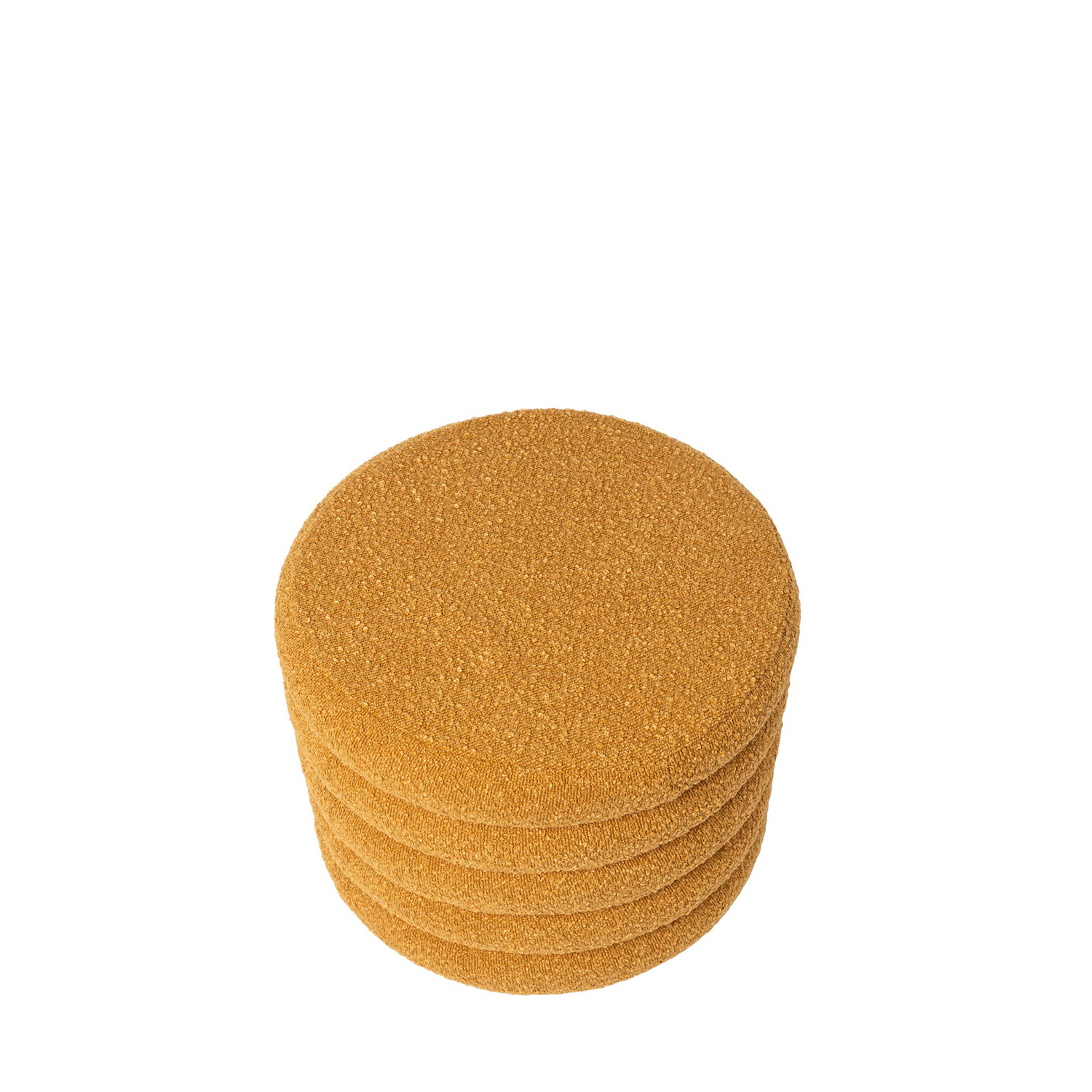 Compacto y con un diseño encantador, el puff HARRY es mucho más que un simple asiento auxiliar. Tapizado en una suave y envolvente tela tipo borreguito, esta pieza invita al tacto y al confort, aportando una sensación acogedora que transforma cualquier rincón en un refugio de relax.