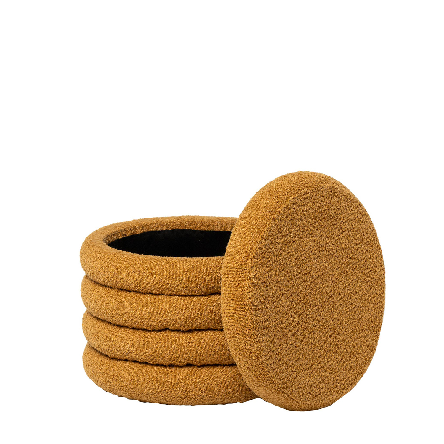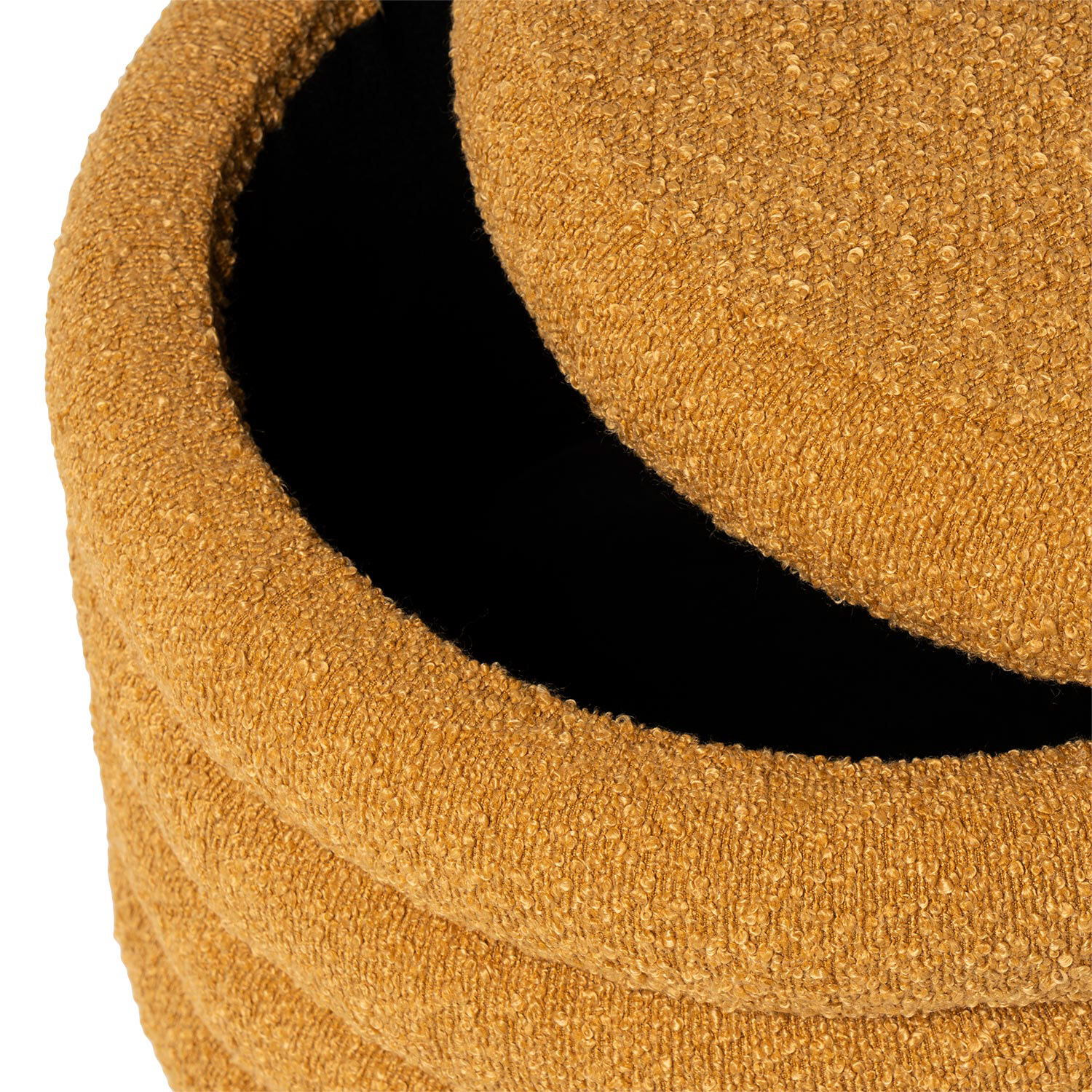 Su estructura cilíndrica esconde un práctico secreto: la tapa superior se retira con facilidad, revelando un compartimento interior perfecto para almacenar mantas, revistas o pequeños objetos del día a día. Esta funcionalidad lo convierte en una opción ideal para espacios reducidos o ambientes que apuestan por el orden sin renunciar al estilo.