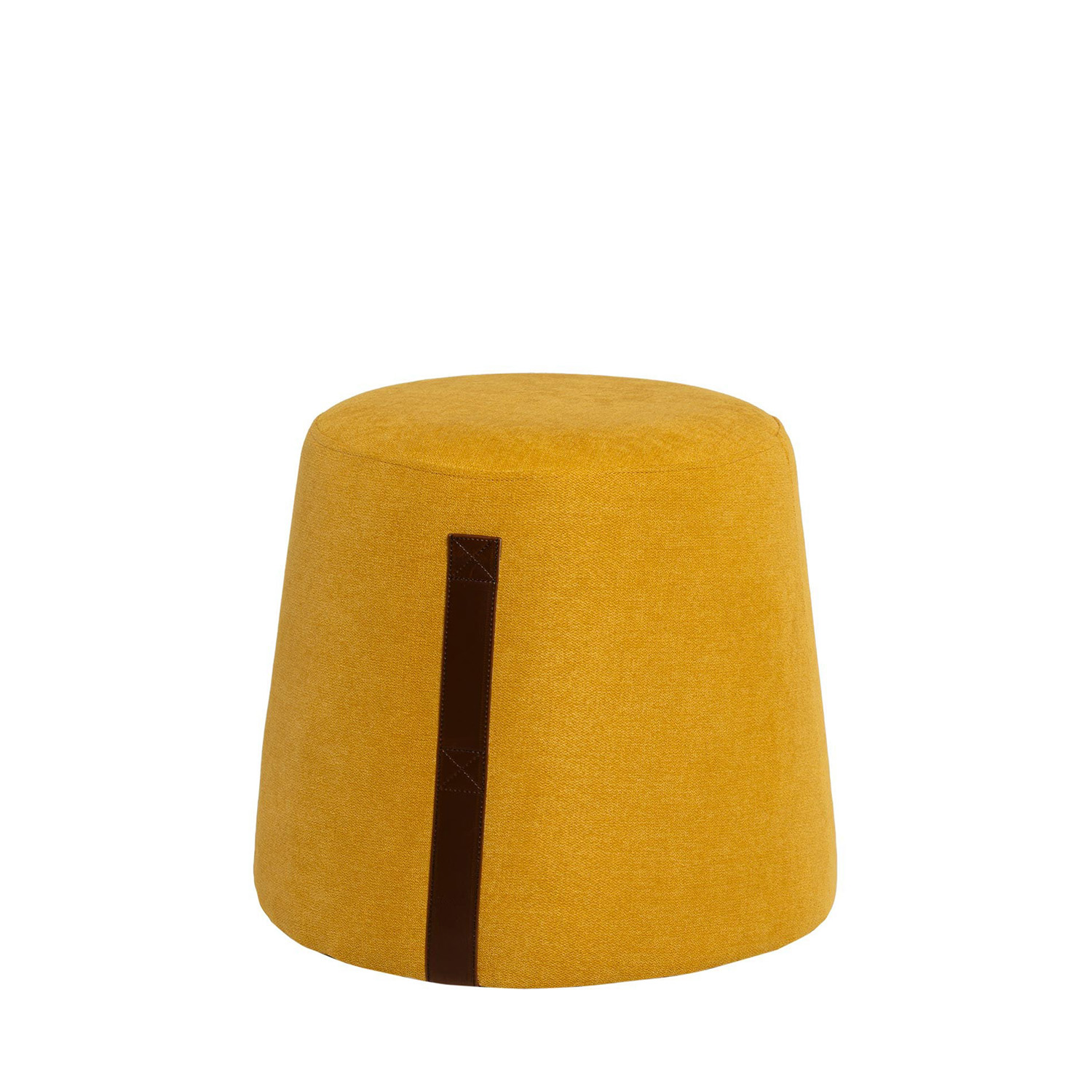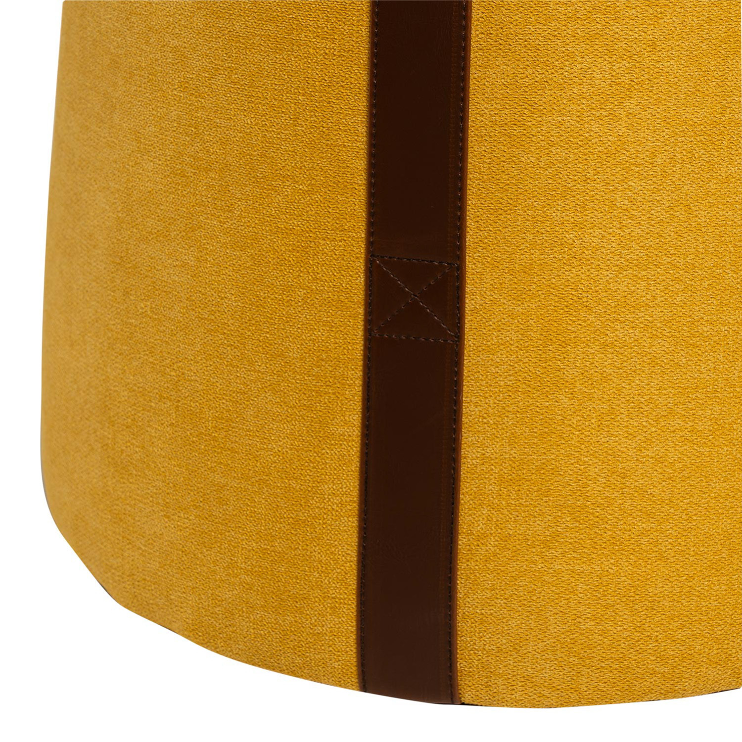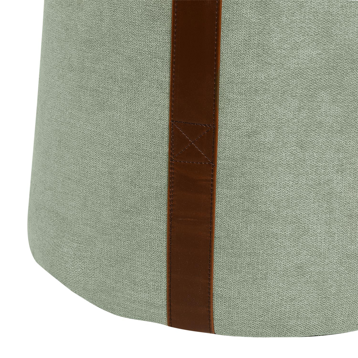 En el lateral, un asa de polipiel añade un elemento práctico y decorativo, facilitando su traslado y convirtiéndolo en una pieza versátil para moverlo de un rincón a otro.