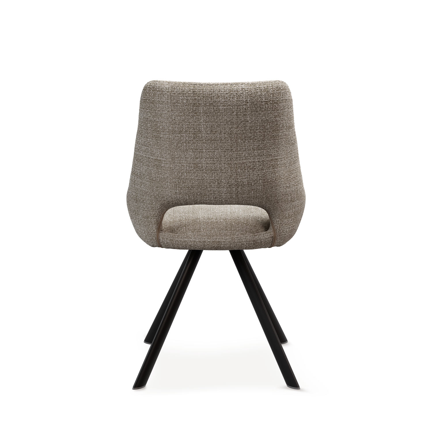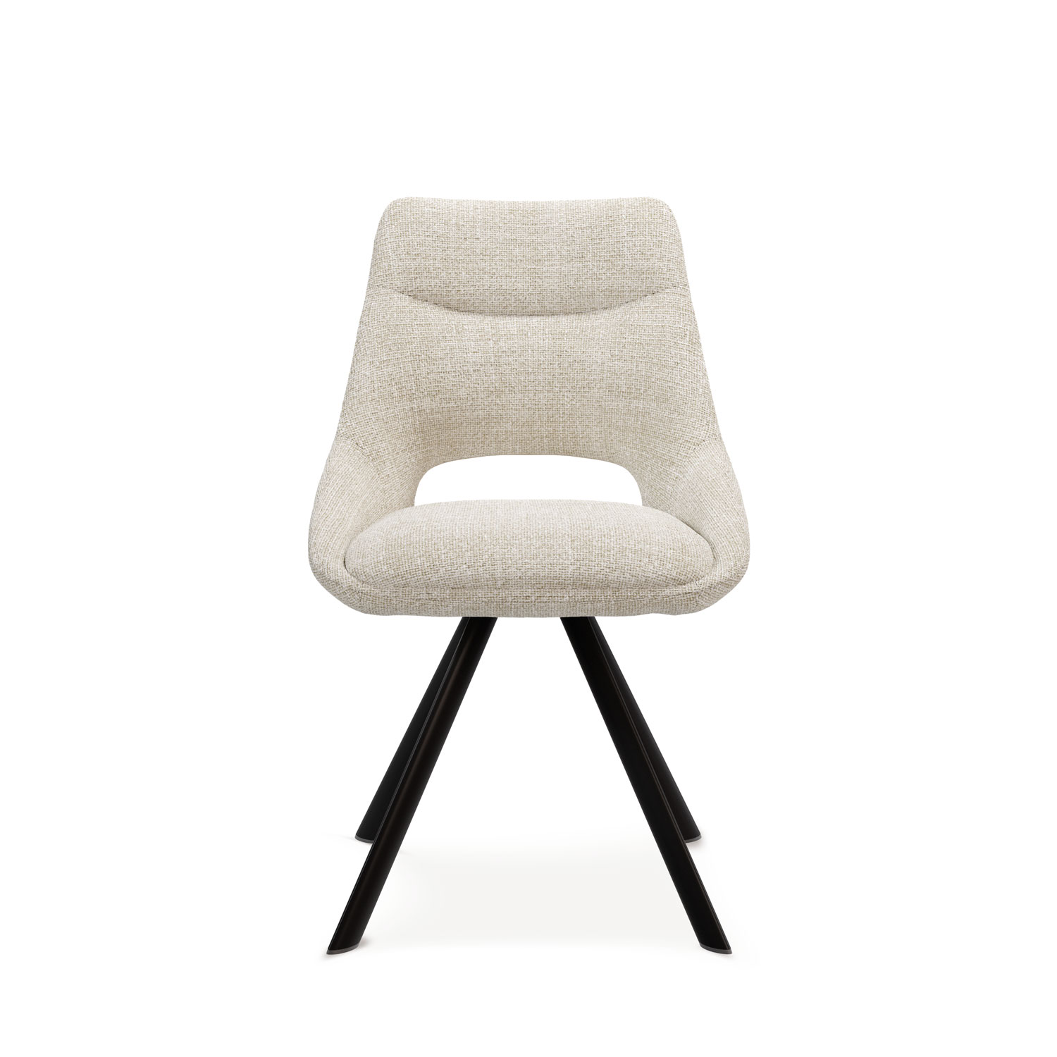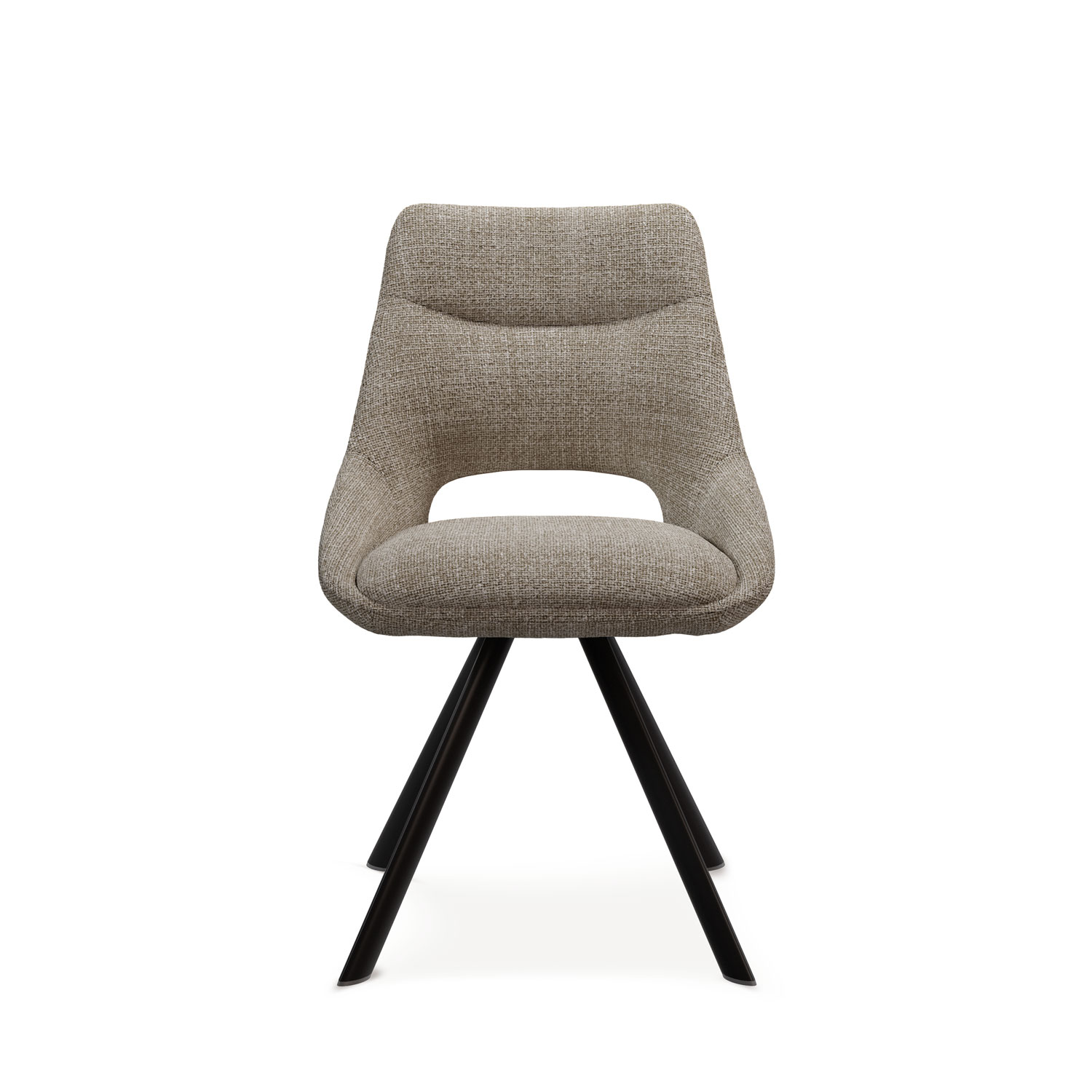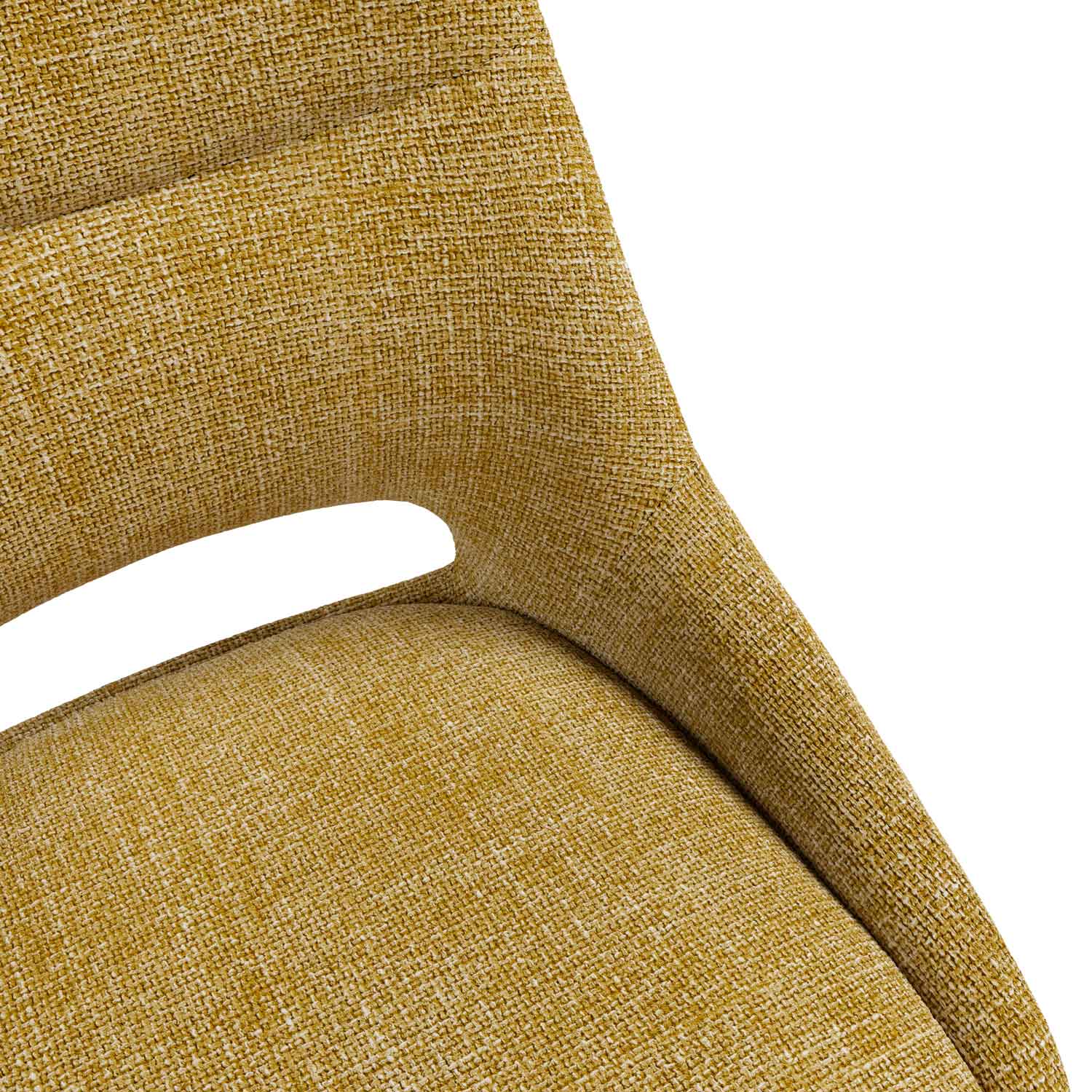 La silla CALLIE destaca por su diseño original, con un respaldo ancho y un elegante detalle de apertura que le confiere un aspecto sofisticado.
