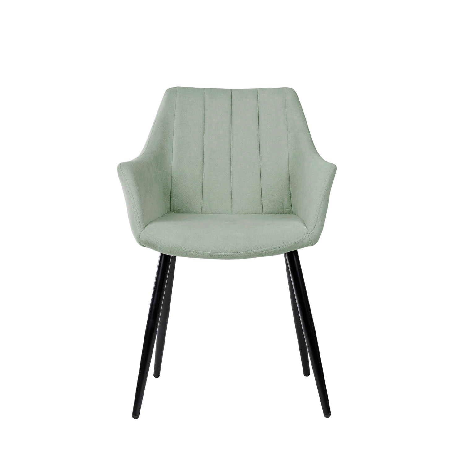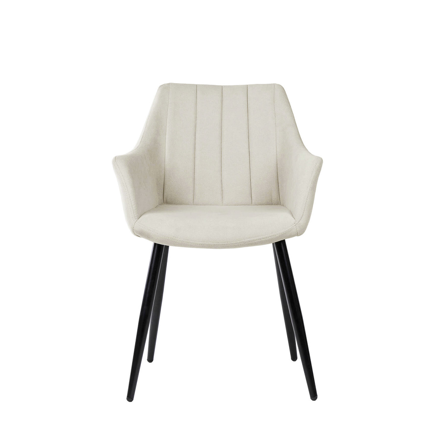 Las patas, delgadas y anguladas, están acabadas en color negro, proporcionando un contraste llamativo con la tapicería clara y asegurando una estabilidad óptima.
