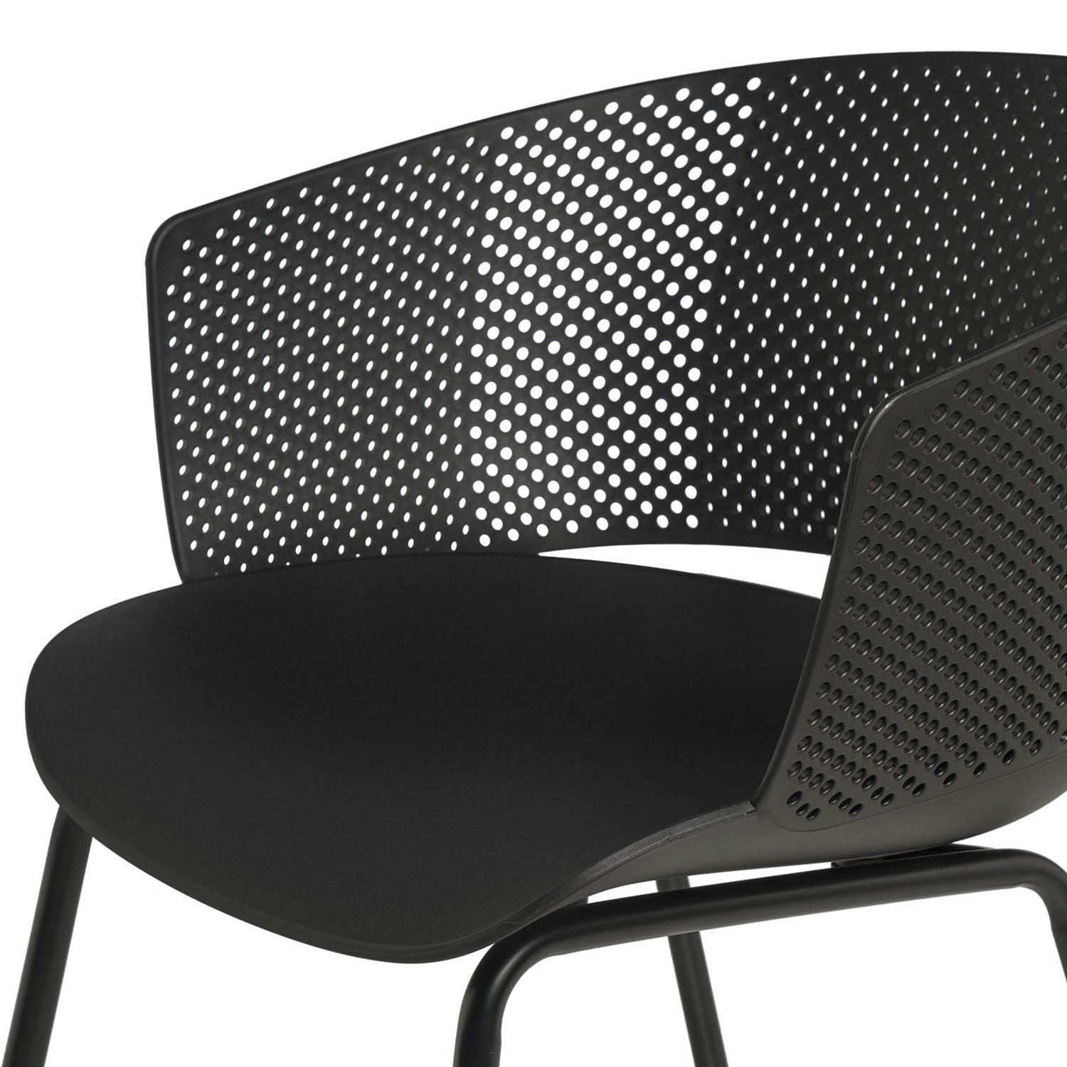 Su respaldo ergonómico, con perforaciones que aportan un toque de estilo, se adapta perfectamente a la curva de la espalda.