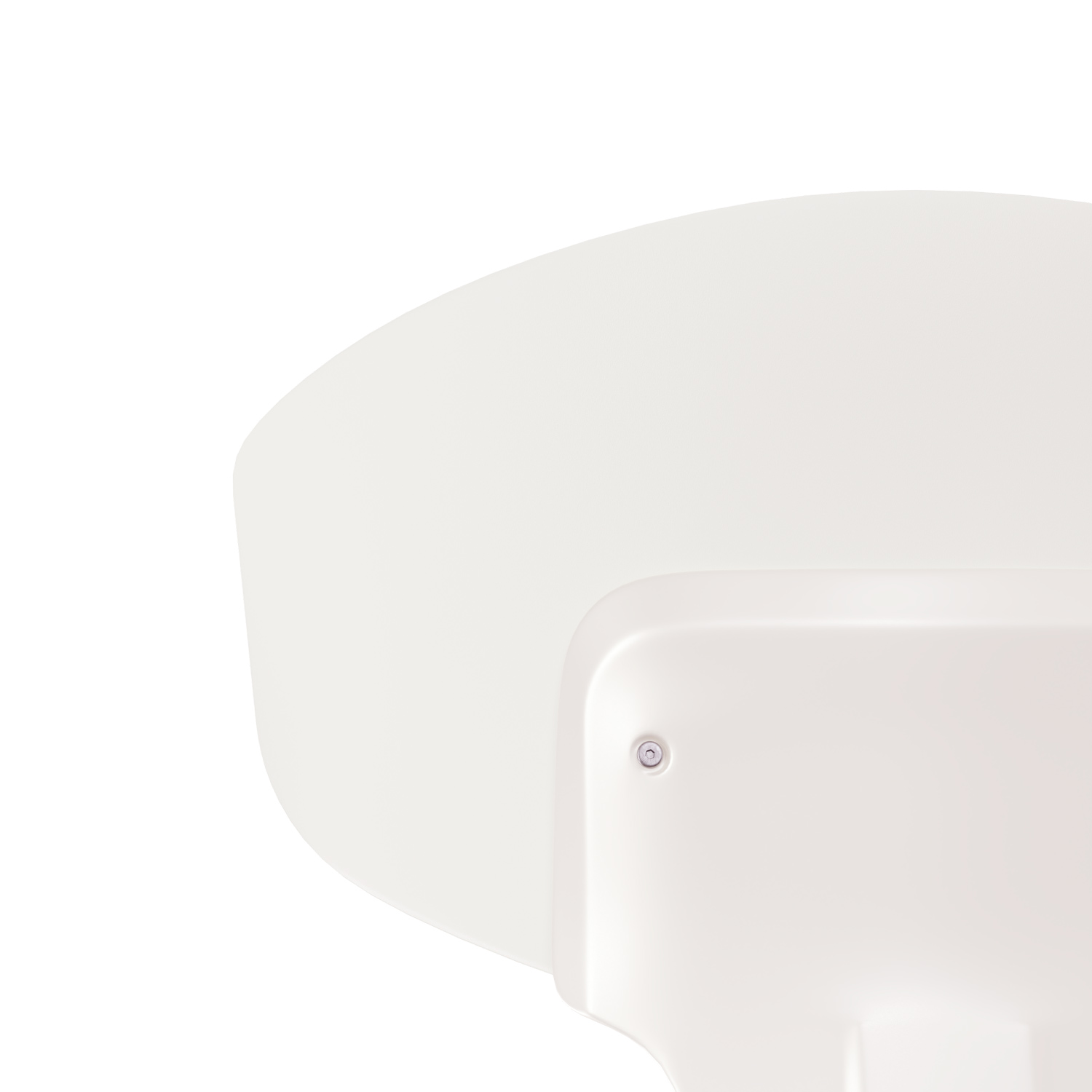 Fabricada con polipropileno y patas de metal lacado, esta silla no solo es elegante sino también resistente.