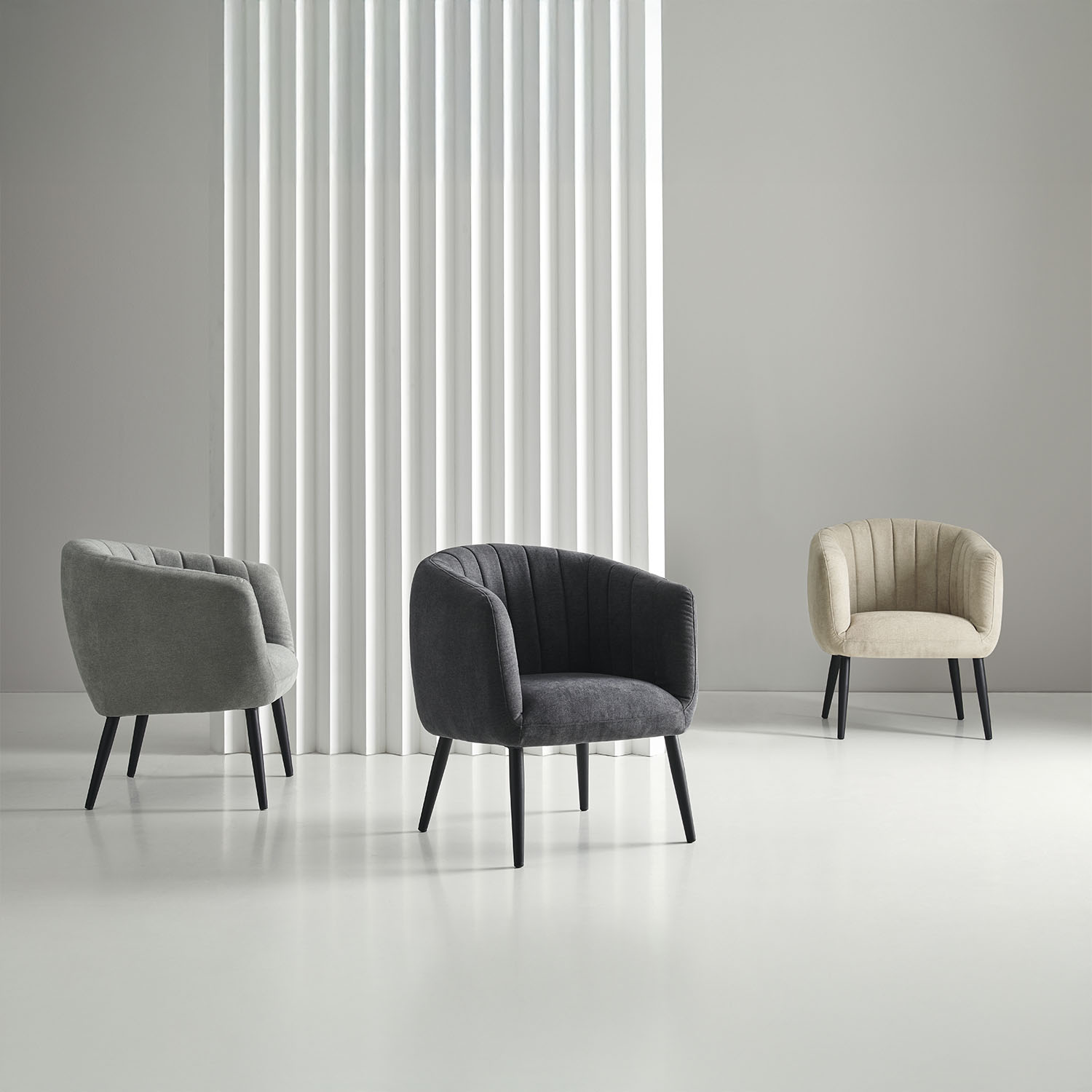 La butaca VENICE es una pieza que aporta calma, estilo y funcionalidad a partes iguales. Su estructura envolvente invita al descanso, con líneas suaves que generan una silueta acogedora y elegante.