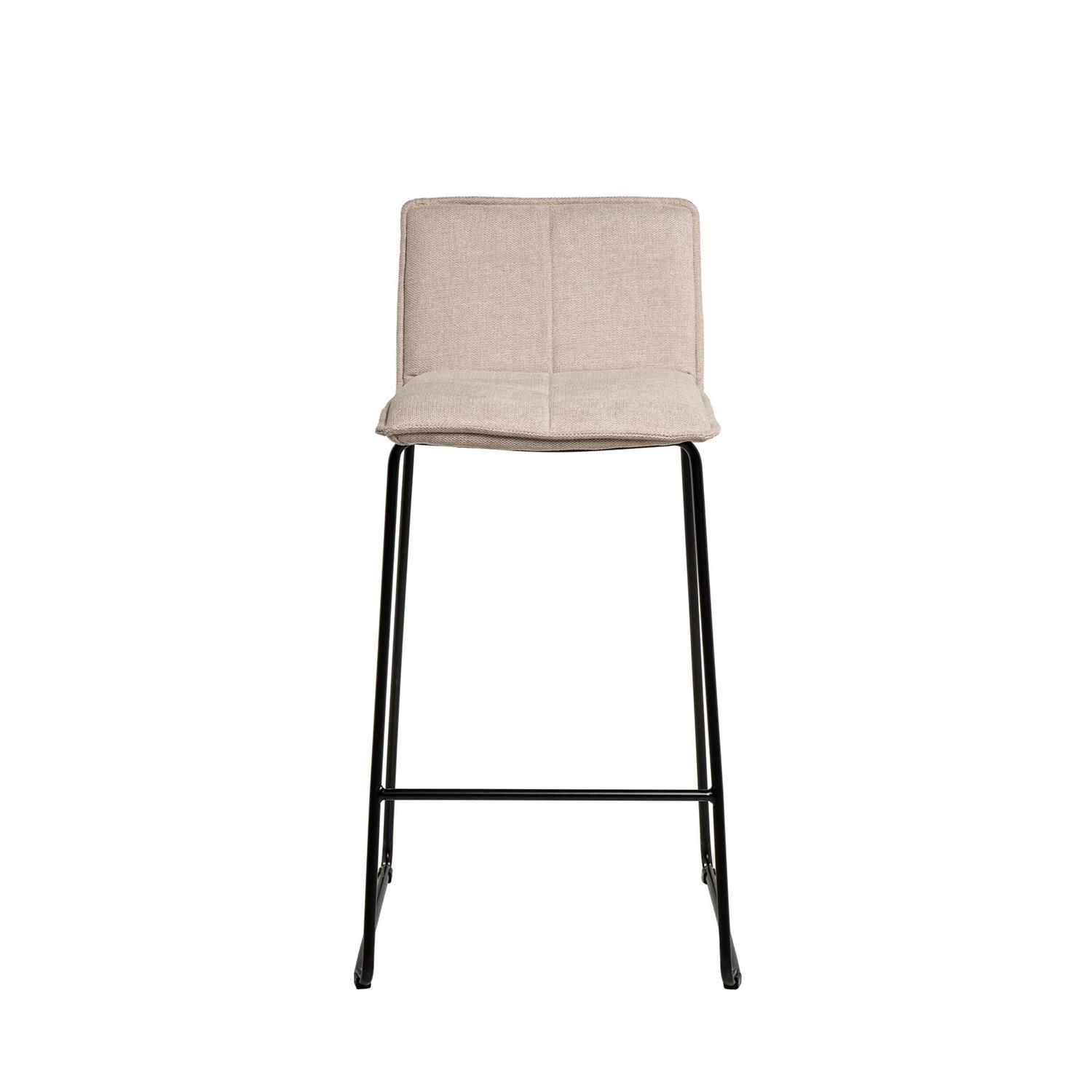 Su estructura cuenta con robustas patas de metal que garantizan estabilidad y durabilidad, junto con un tapizado de tela en color beige (100% poliéster).