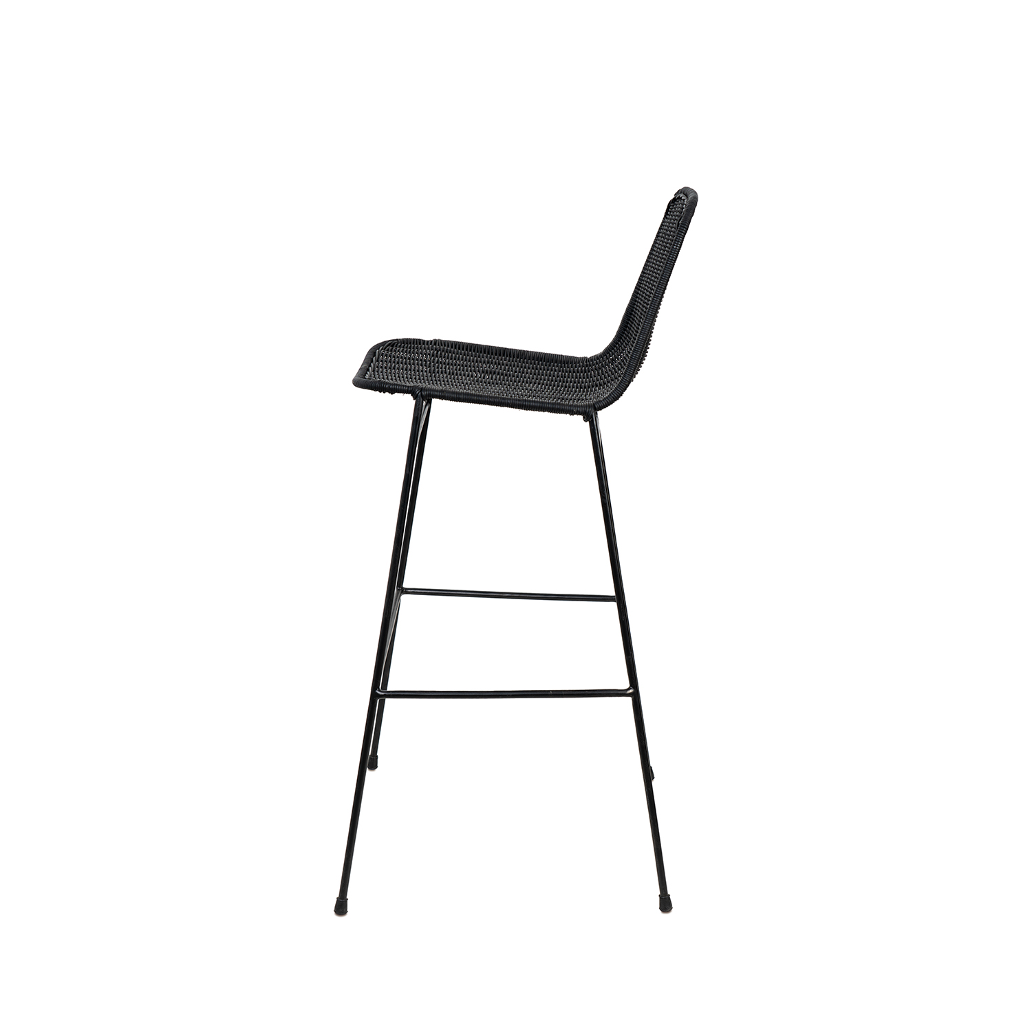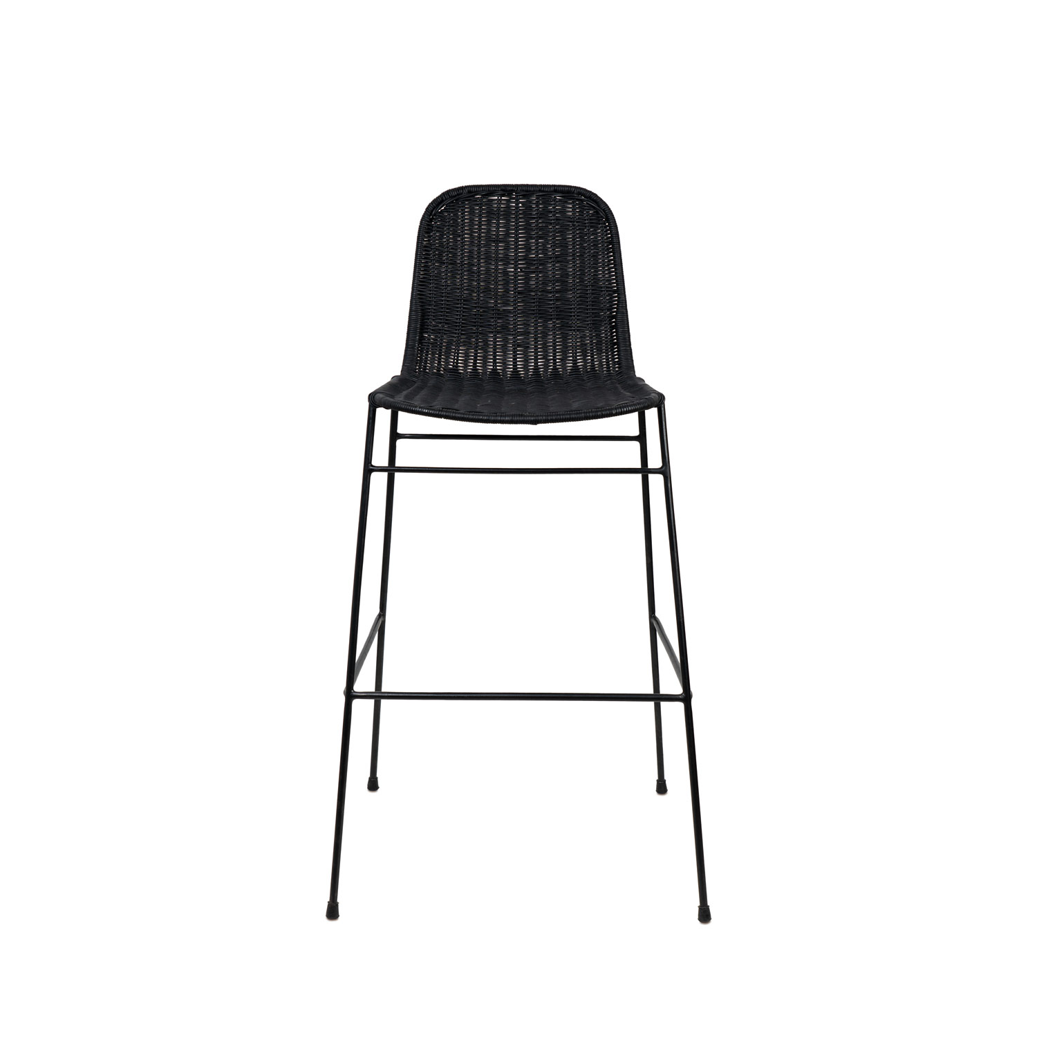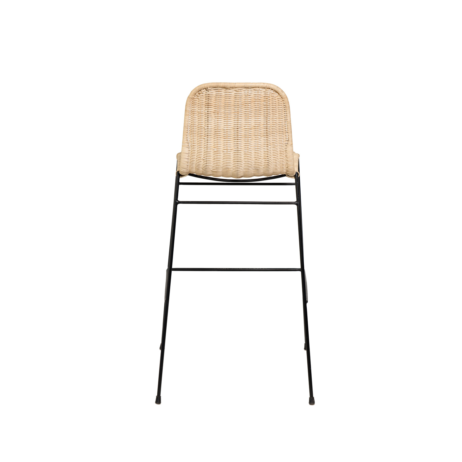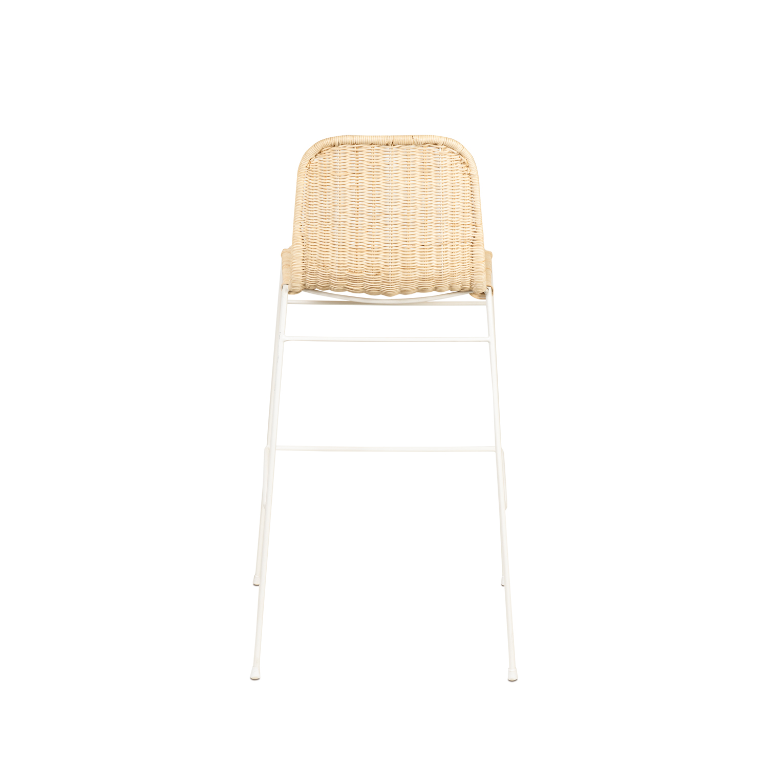 El taburete CARLO se distingue por su elegancia y diseño sofisticado, combinando a la perfección la calidez del ratán natural con la solidez de unas estilizadas patas de hierro en color blanco.