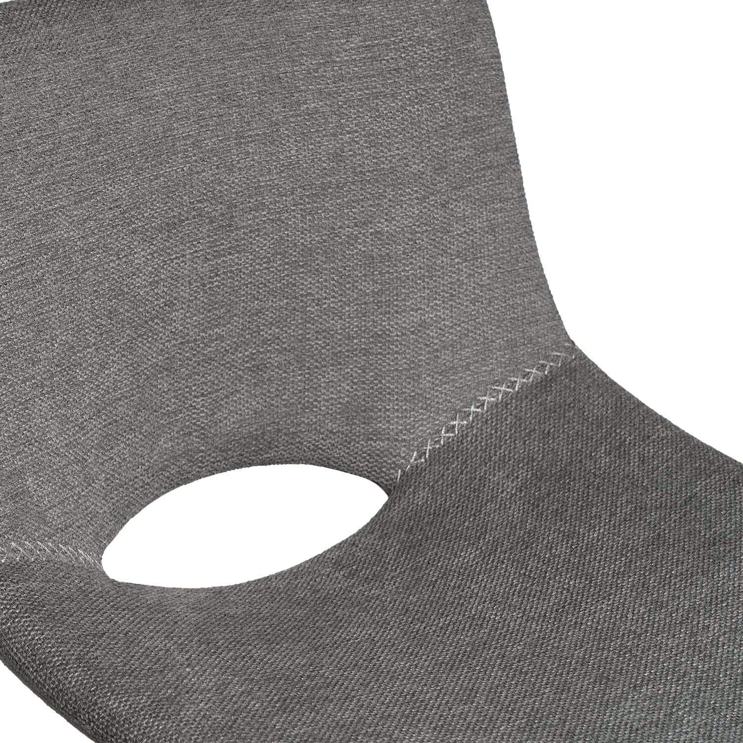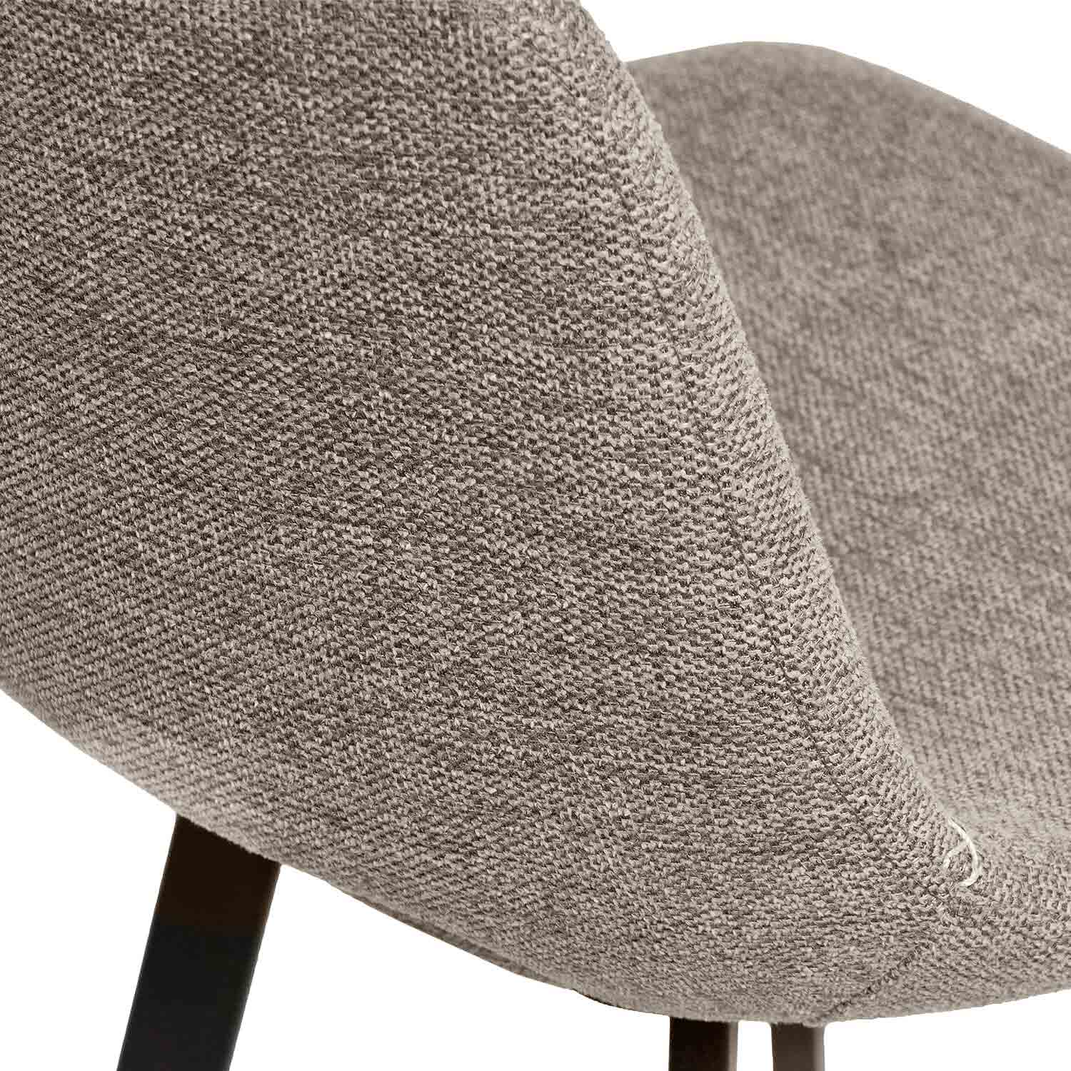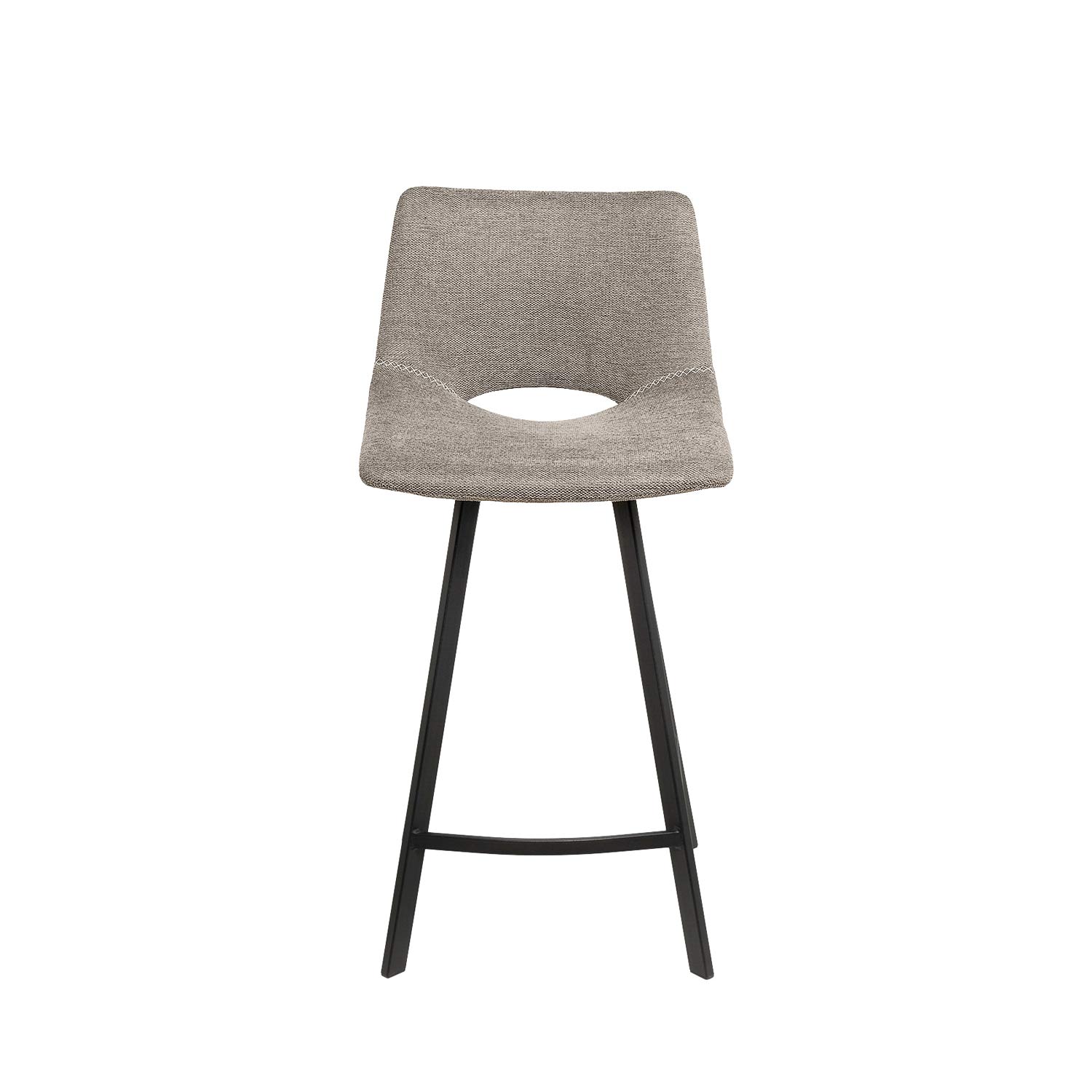 Tapizado en un elegante tejido taupe 100% poliéster, y con un distintivo agujero entre el respaldo y el asiento, este taburete ofrece un diseño único y peculiar.