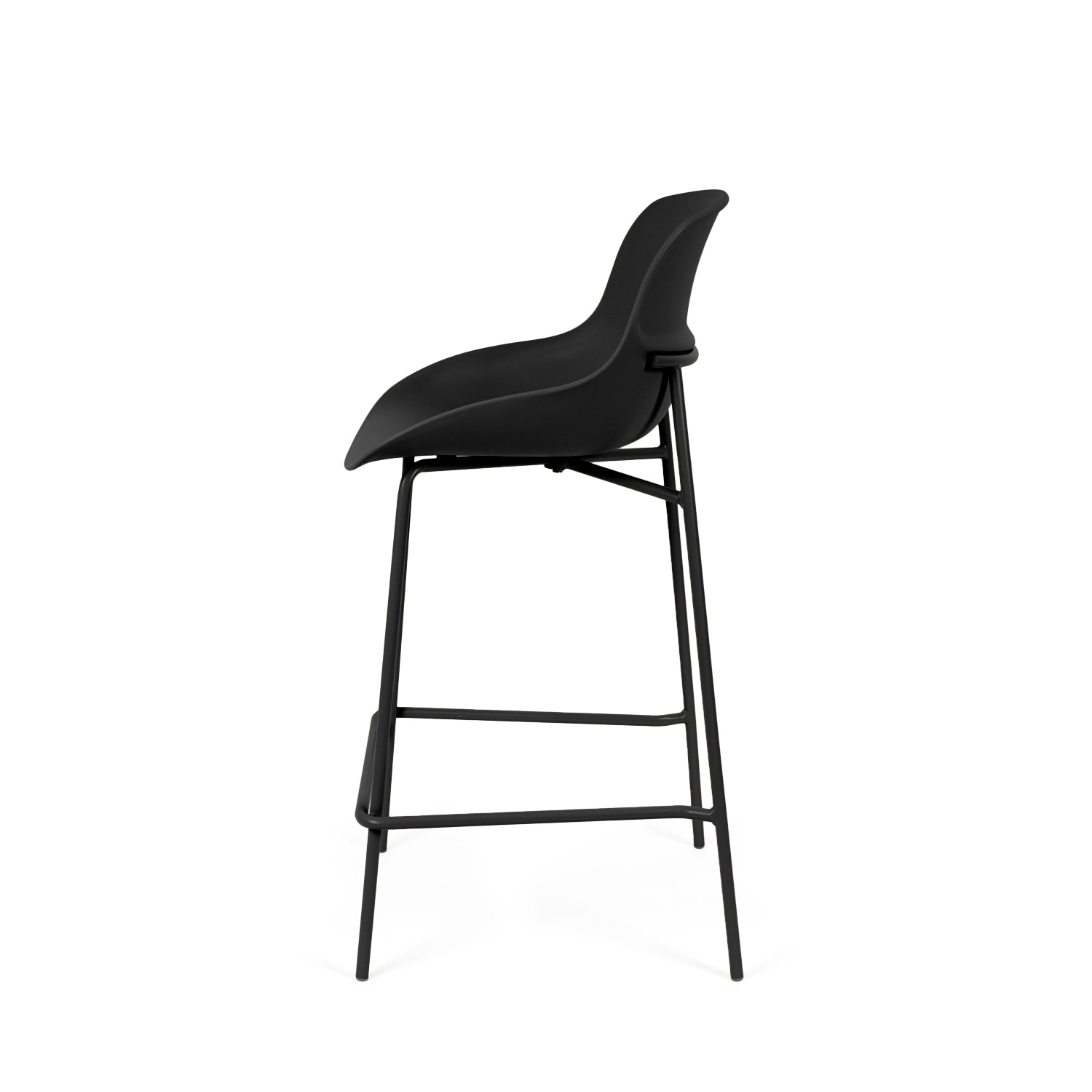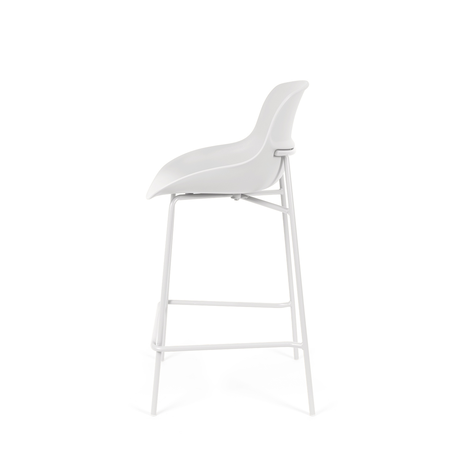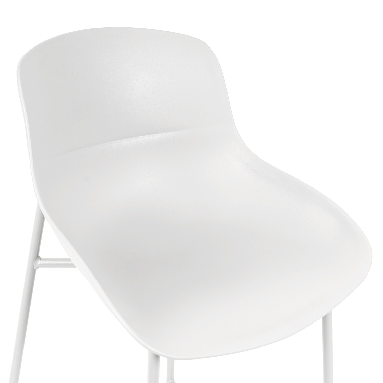 Su asiento de polipropileno de bordes suaves se posa sobre una estructura metálica esbelta, logrando un equilibrio entre funcionalidad y diseño contemporáneo.