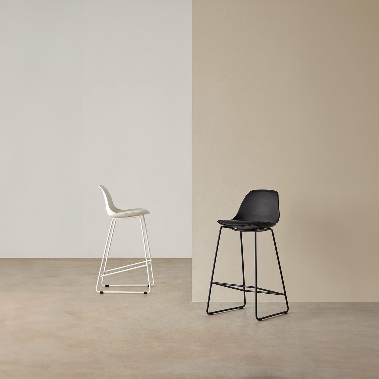 El taburete bajo JAKE es ideal para cocinas o mesas altas, combinando funcionalidad y estilo en cualquier espacio.