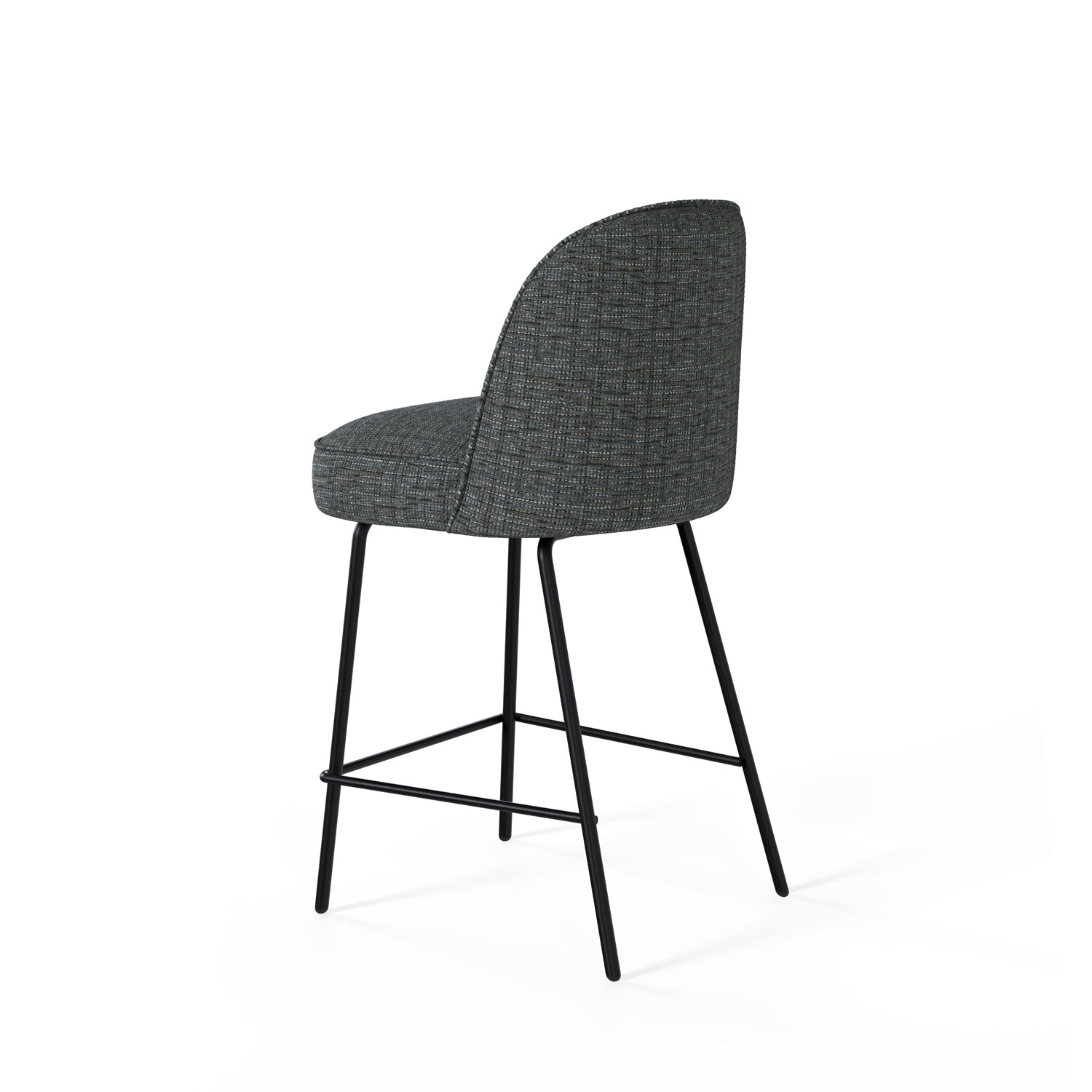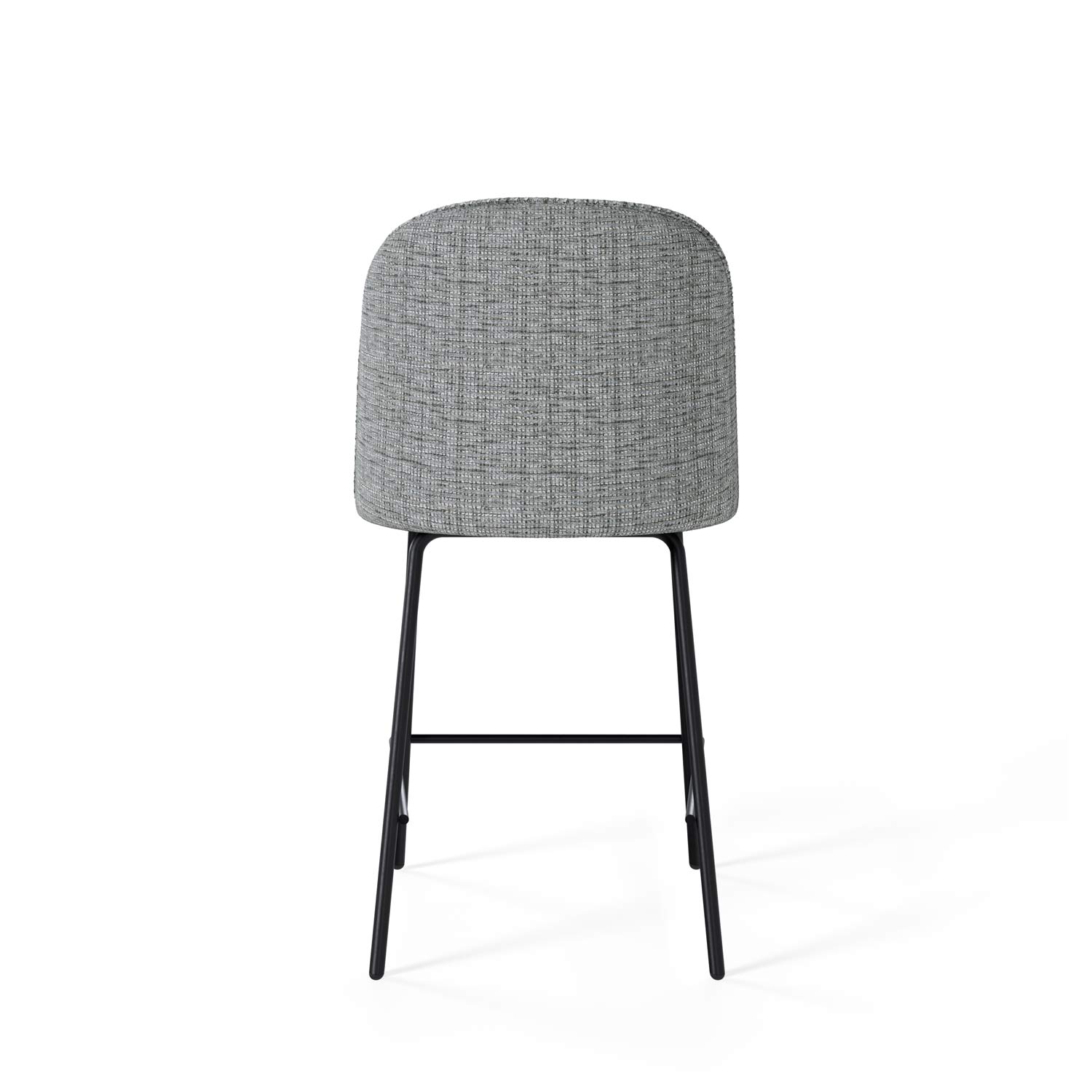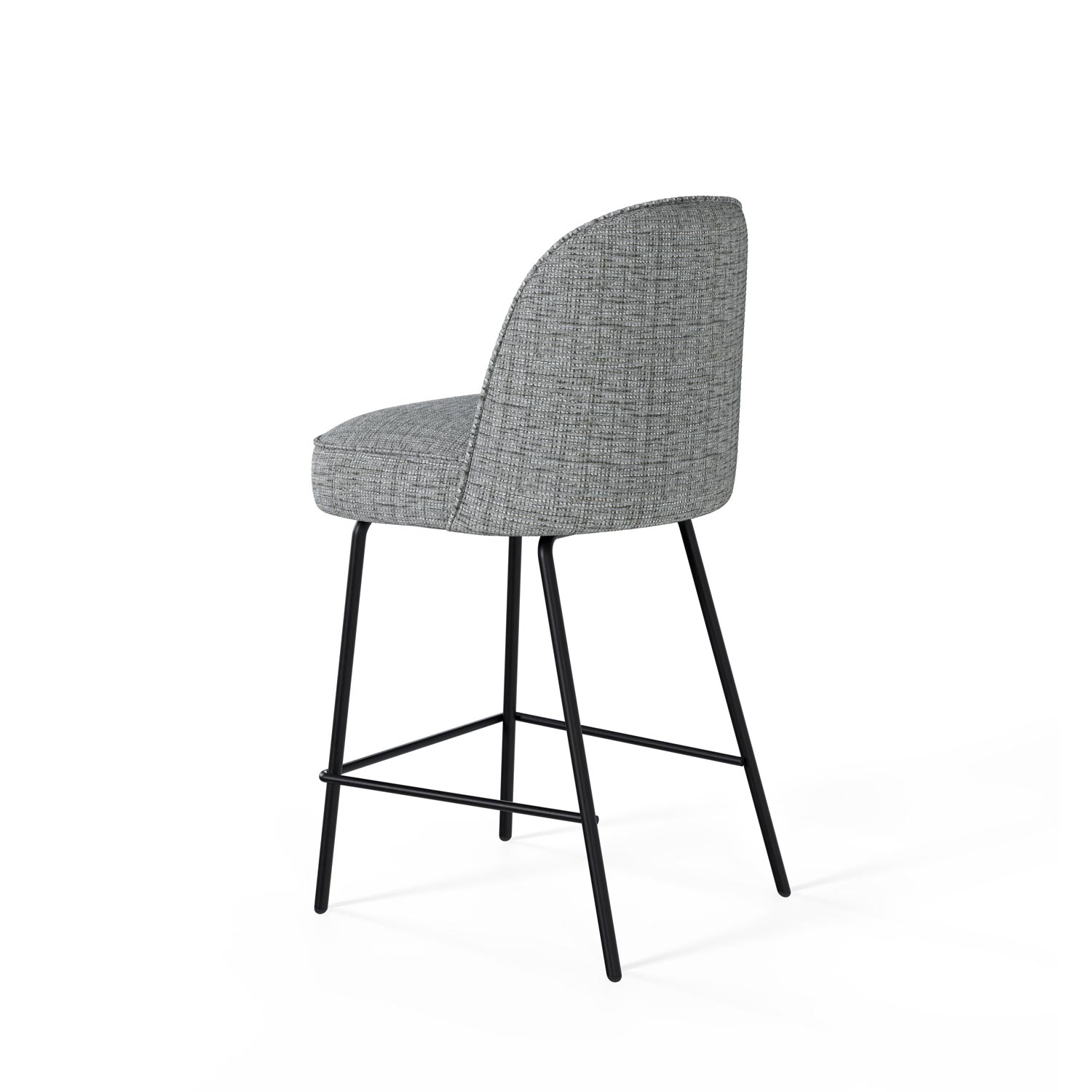 El taburete bajo NELSON destaca por su diseño moderno y elegante, ideal para interiores contemporáneos. Su asiento y respaldo están tapizados en un suave tejido de poliéster 100% gris claro, ofreciendo tanto confort como estilo.