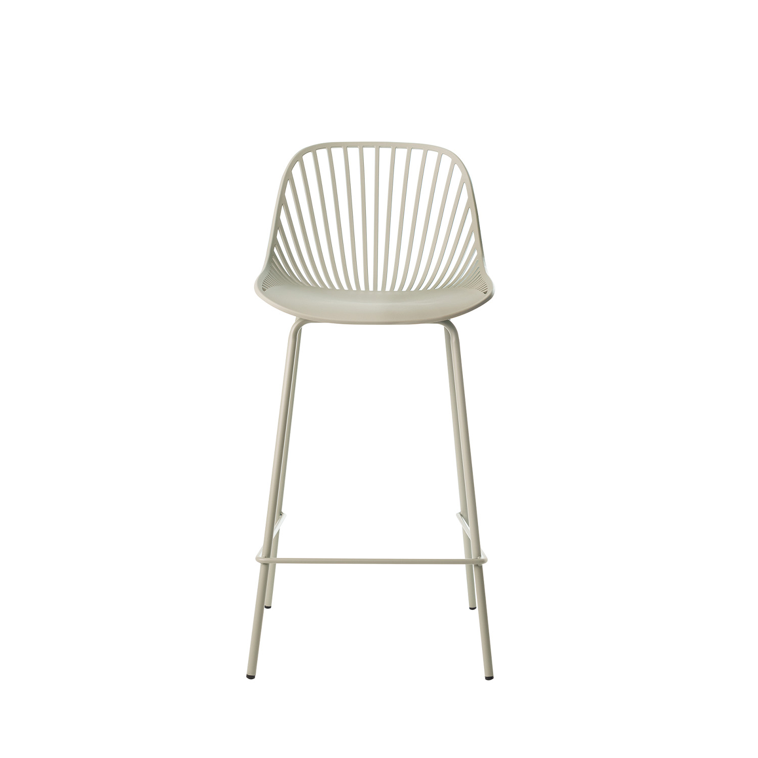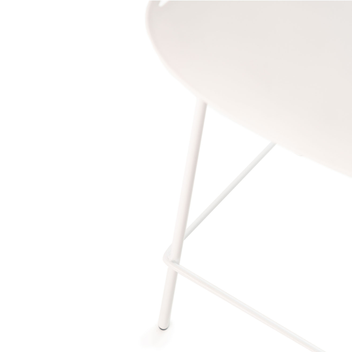 Sus patas, de metal lacado en mate, incluyen un reposapiés que proporciona mayor estabilidad y comodidad.
