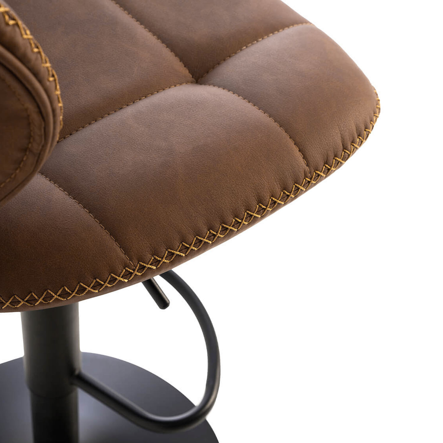 El taburete PIPER se adapta perfectamente a cualquier espacio gracias a su diseño industrial y elegante. Cuenta con una base circular y una columna delgada metálica en color negro, que le confieren un toque sofisticado y estabilidad.